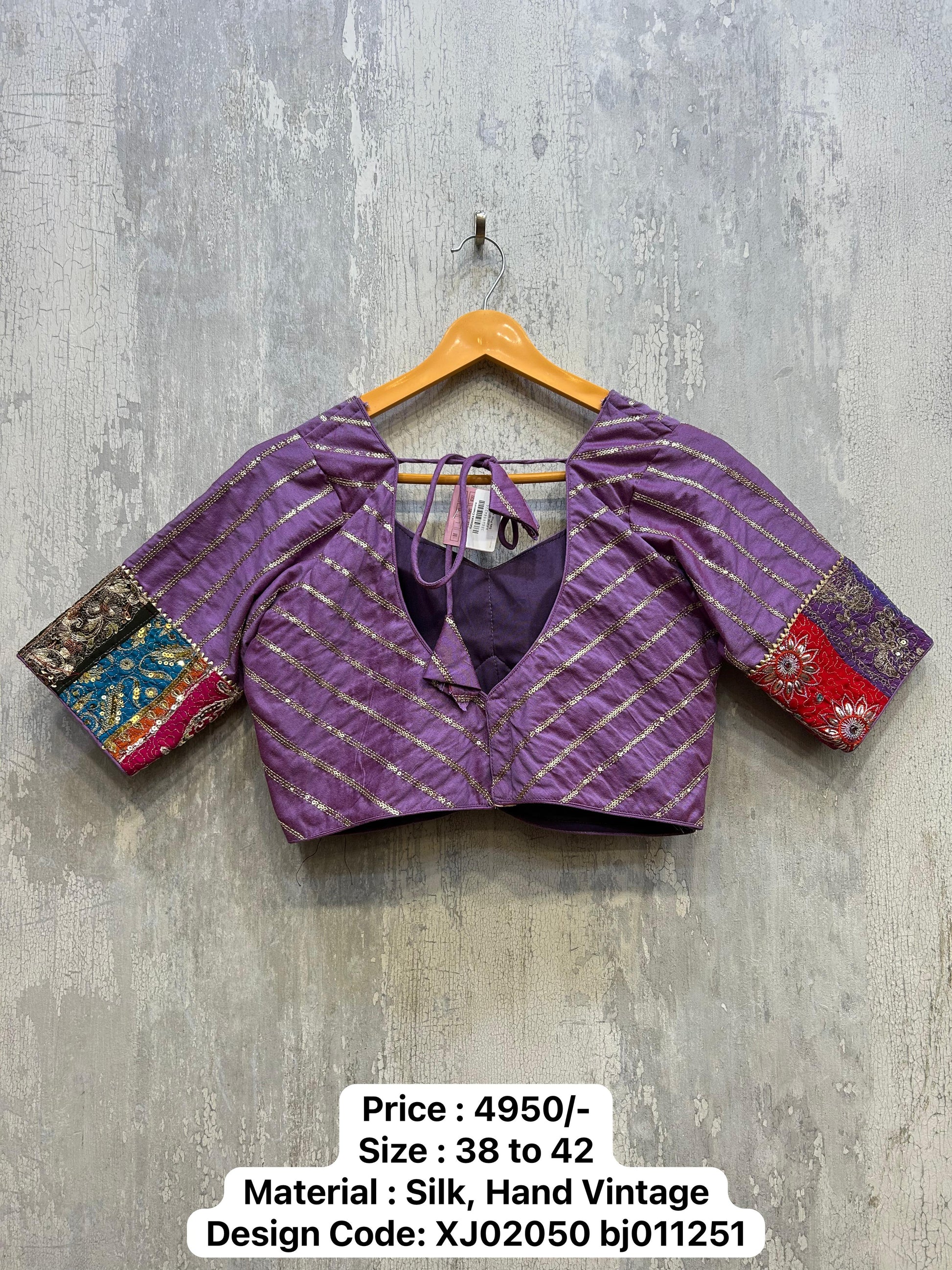 This blouse is crafted from premium silk fabric, offering a luxurious texture and radiant sheen. The hand-vintage design showcases intricate handwork, blending traditional artistry with contemporary aesthetics. With its tailored fit and attention to detail, this blouse exudes sophistication while maintaining an air of understated elegance.