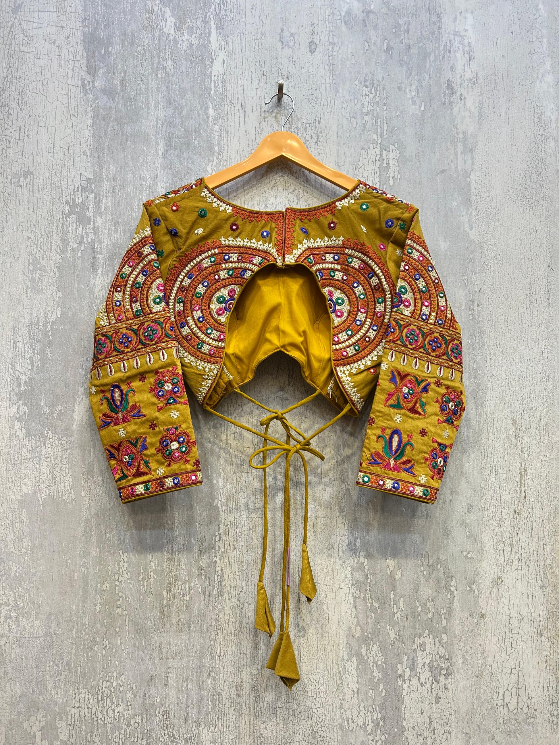 Designed with a contemporary silhouette, this blouse features a flattering cut that complements both traditional and fusion outfits. Whether paired with a classic saree, a flowing lehenga, or even high-waisted trousers, the Rabari embroidery blouse adds a touch of ethnic elegance to your ensemble while maintaining a modern, trendy edge.