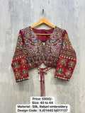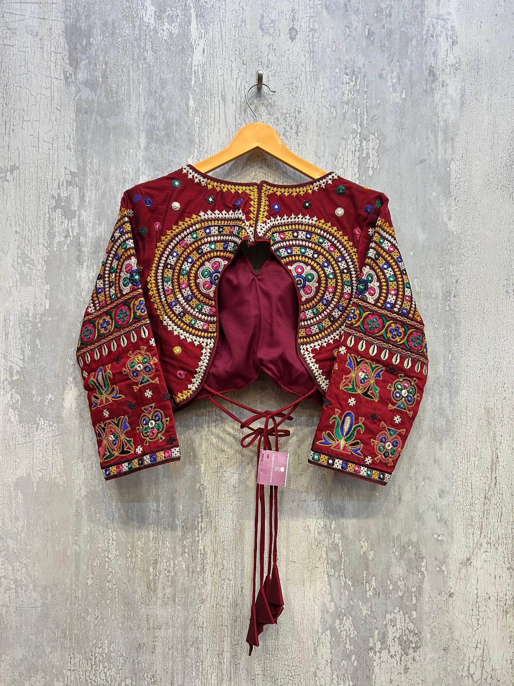 Designed with a contemporary silhouette, this blouse features a flattering cut that complements both traditional and fusion outfits. Whether paired with a classic saree, a flowing lehenga, or even high-waisted trousers, the Rabari embroidery blouse adds a touch of ethnic elegance to your ensemble while maintaining a modern, trendy edge.