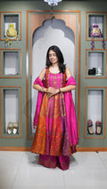 Regal Heritage Short Anarkali Set with Designer Palazzo & Self-Tone Dupatta