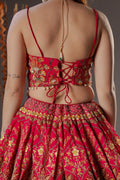 The ensemble features a designer corset-style blouse, tailored on a pure silk base that offers a rich texture, natural sheen, and a structured, flattering fit. The corset silhouette enhances the form beautifully, making it a perfect blend of modern fashion and traditional charm.