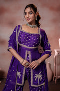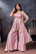 The Banarasi butti bottom brings in a touch of heritage charm, featuring classic woven motifs that lend richness and depth to the outfit. The traditional Banarasi detailing beautifully balances the modern silhouette, creating a harmonious fusion of style and tradition.