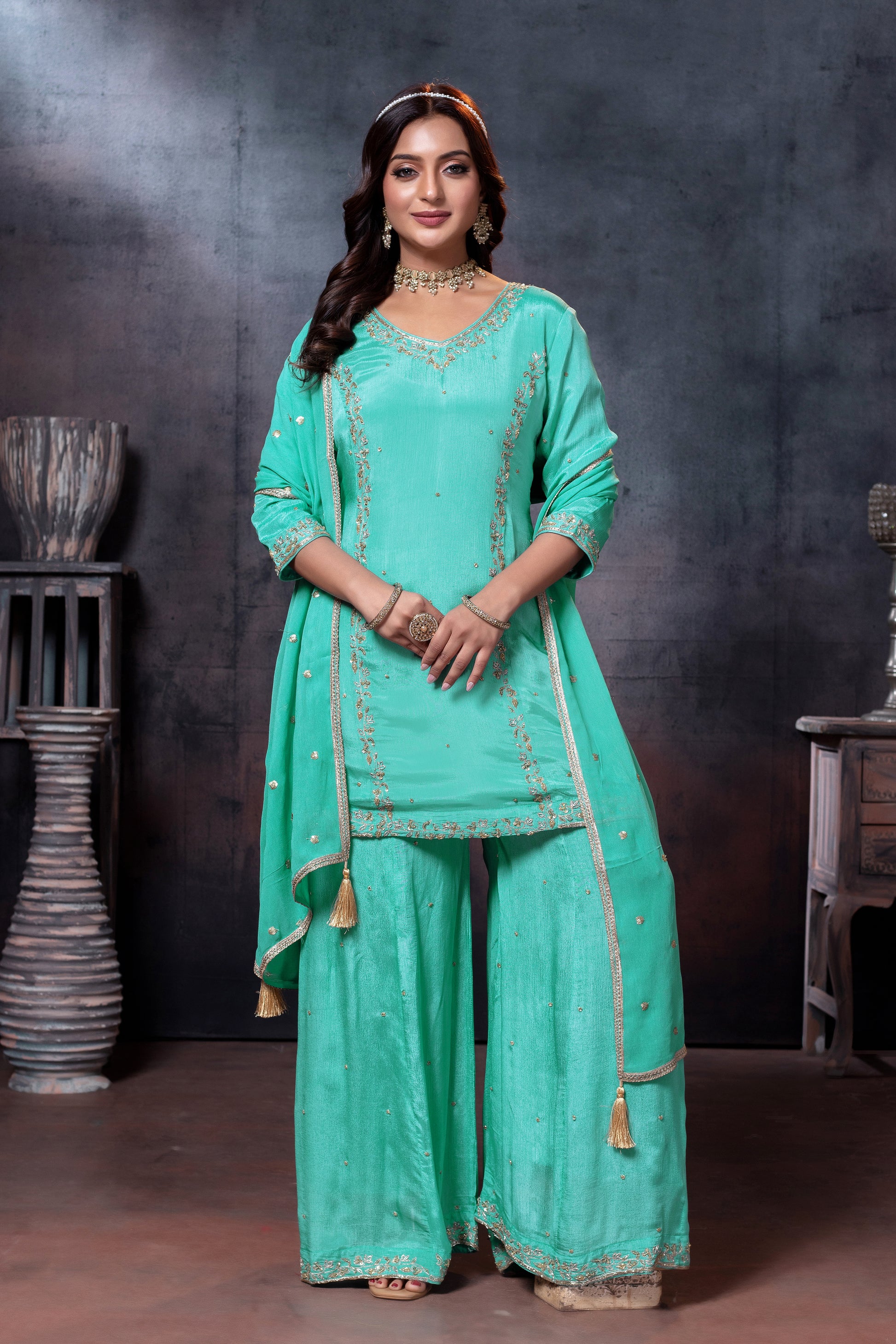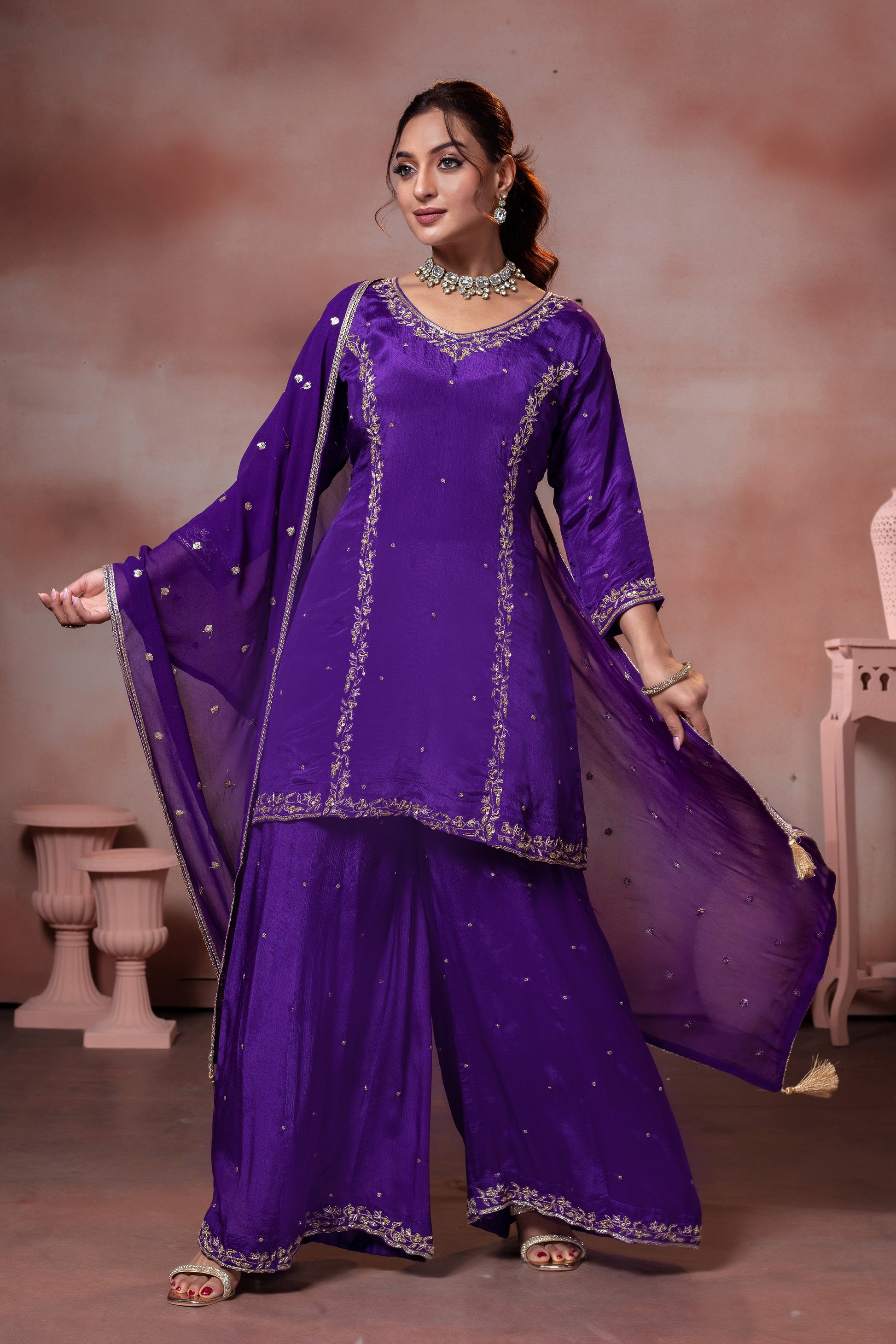 Designer Ensemble with Full Sleeves & Chhutti Butti Georgette Dupatta