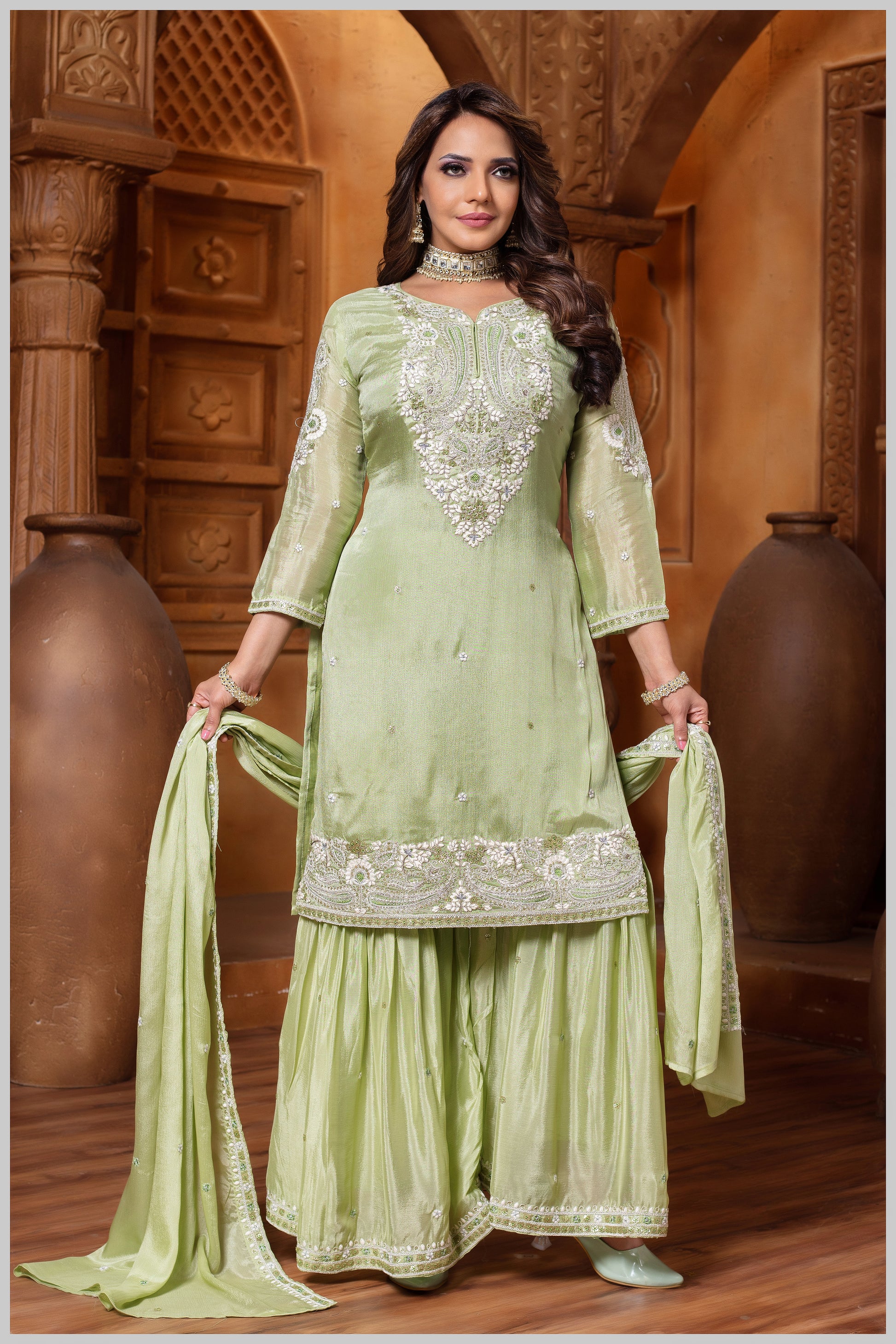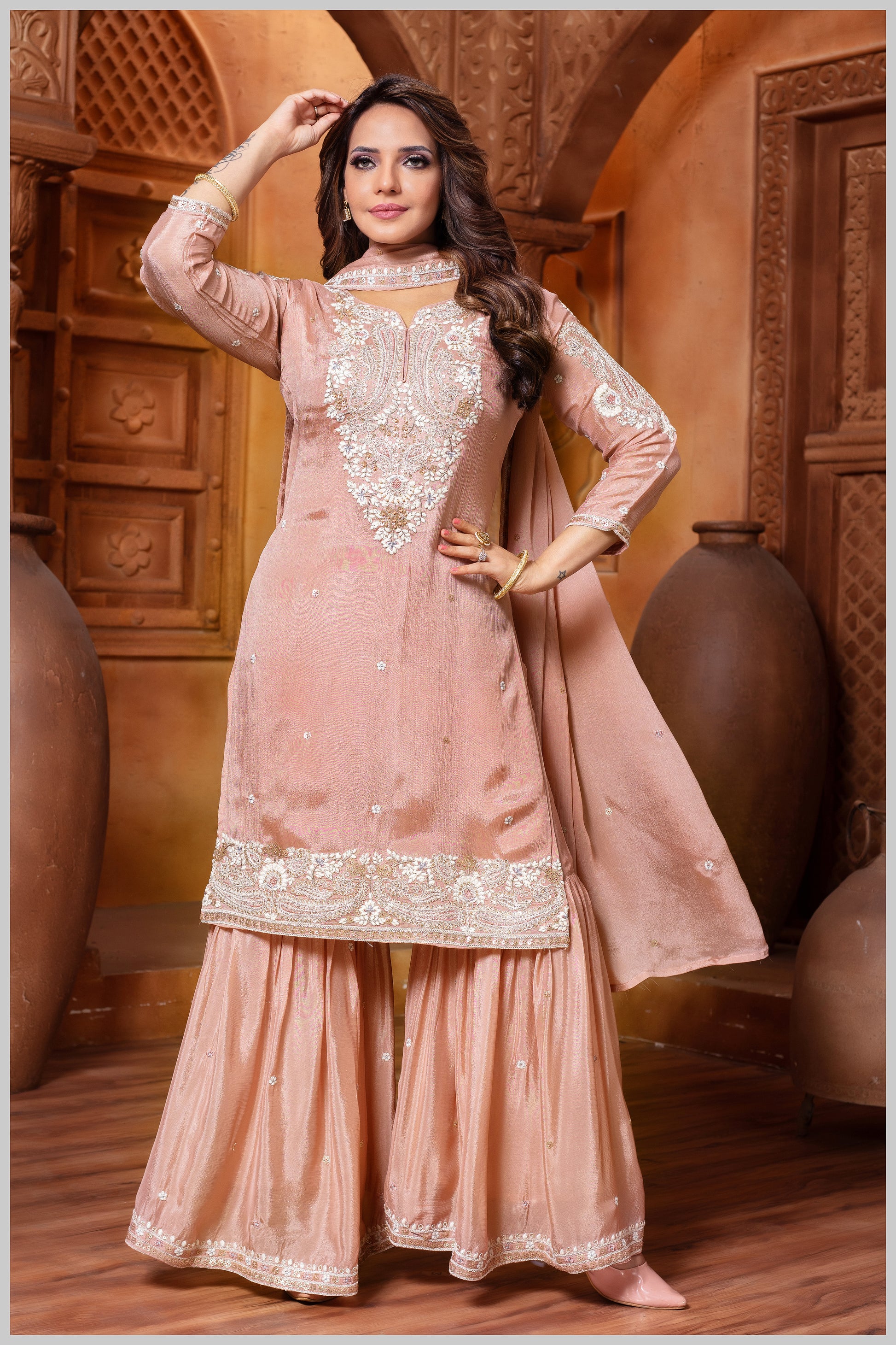 Designer Crepe Fabric Ensemble with Full Sleeves
