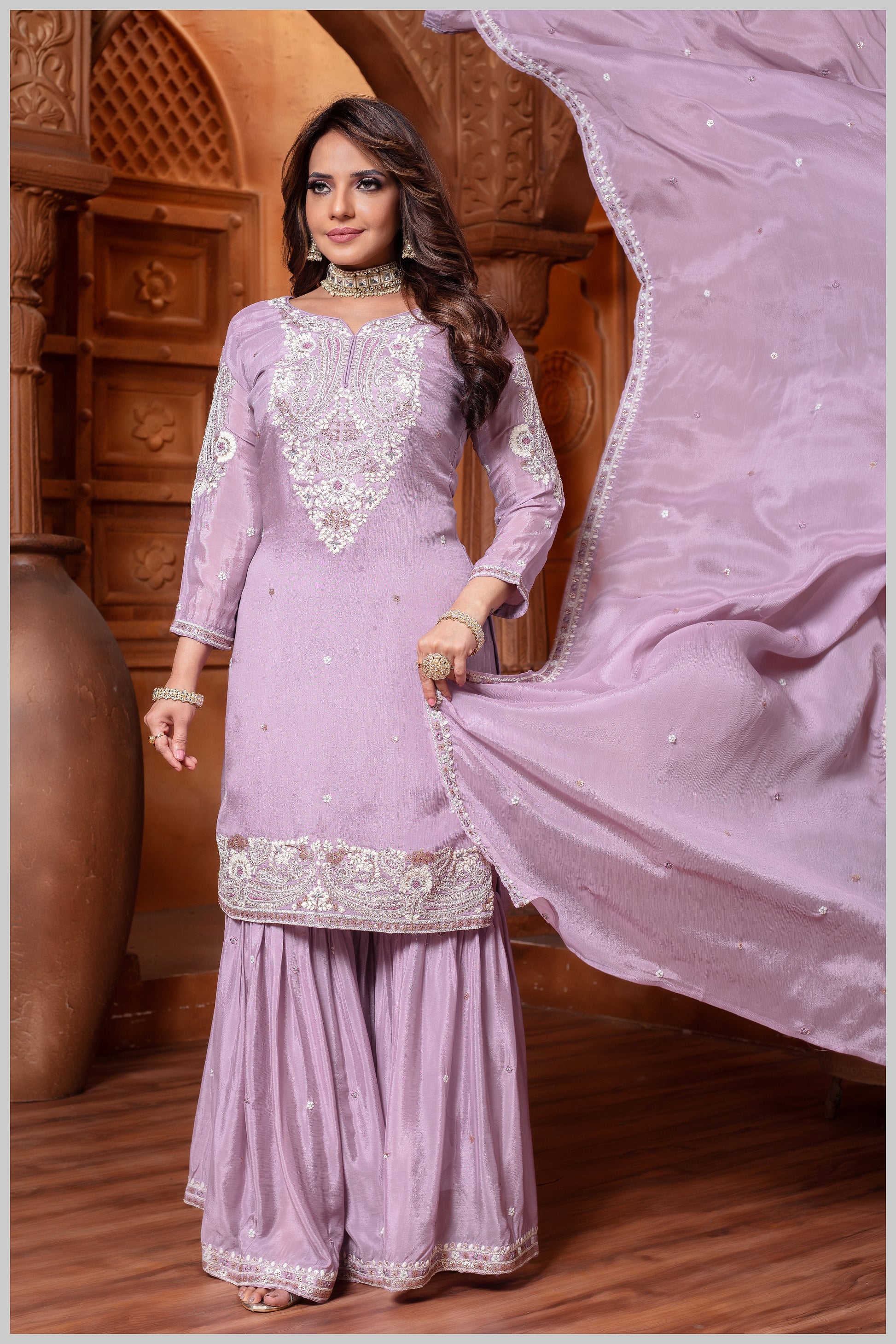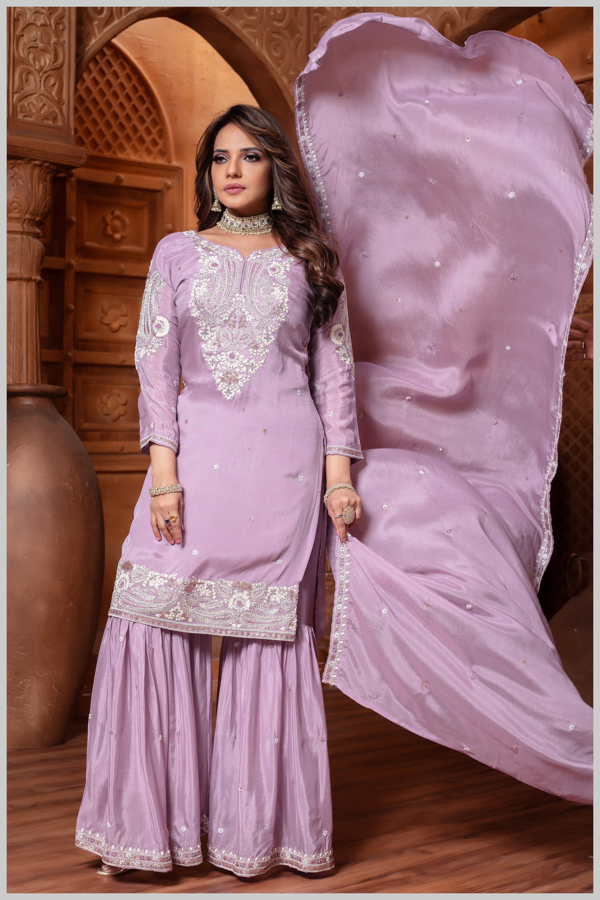 This exclusive designer creation by Kalpanas Creations, Sindhu Bhavan blends modern simplicity with classic comfort, making it a graceful and versatile wardrobe essential.