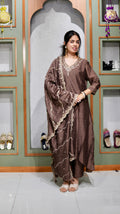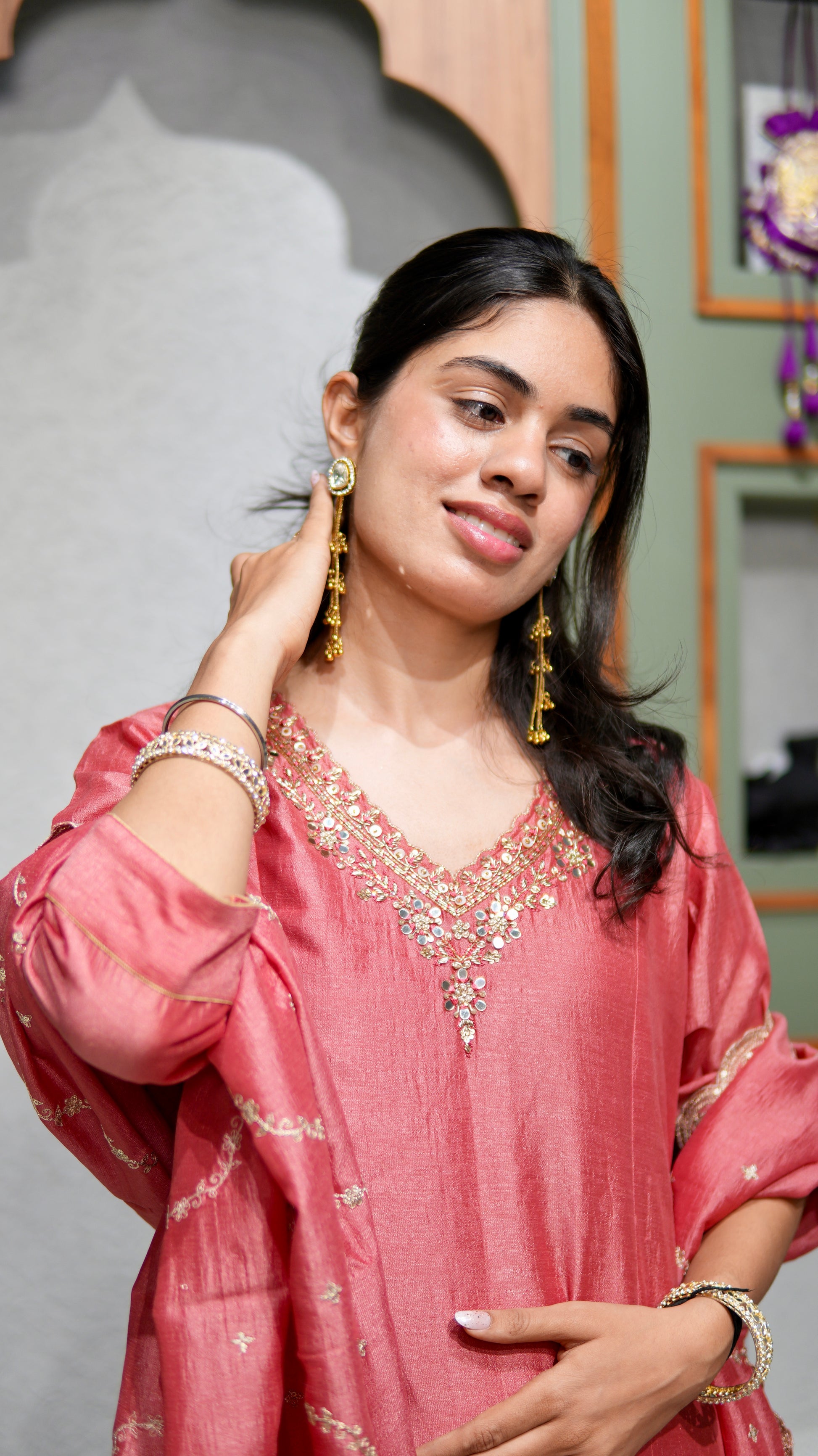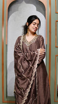 Designer Indo-Western by Kalpana’s Creations beautifully blends heritage aesthetics with modern sophistication, creating an ensemble that feels timeless yet contemporary. Designed for women who love graceful silhouettes with statement detailing, this outfit in an elegant rose pink and brown colour combination reflects warmth, richness, and refined festive charm. The colour pairing enhances the overall appeal, making it suitable for both day and evening celebrations.