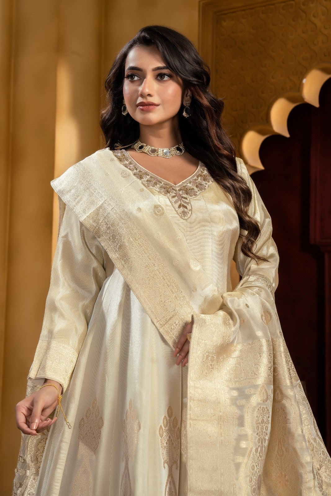 Designer Pure Tissue & Banarasi Weaving Ensemble with Zardosi Work