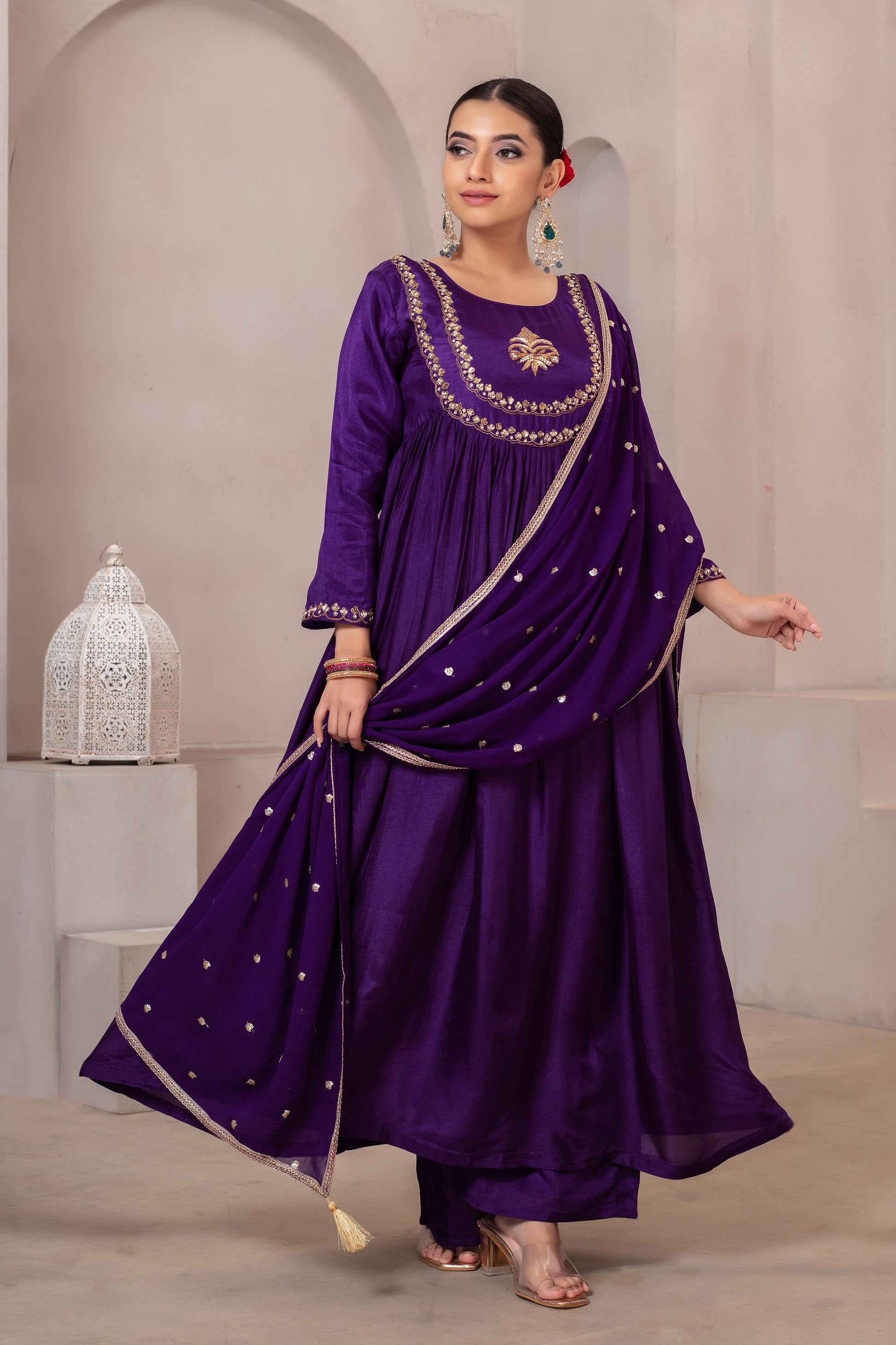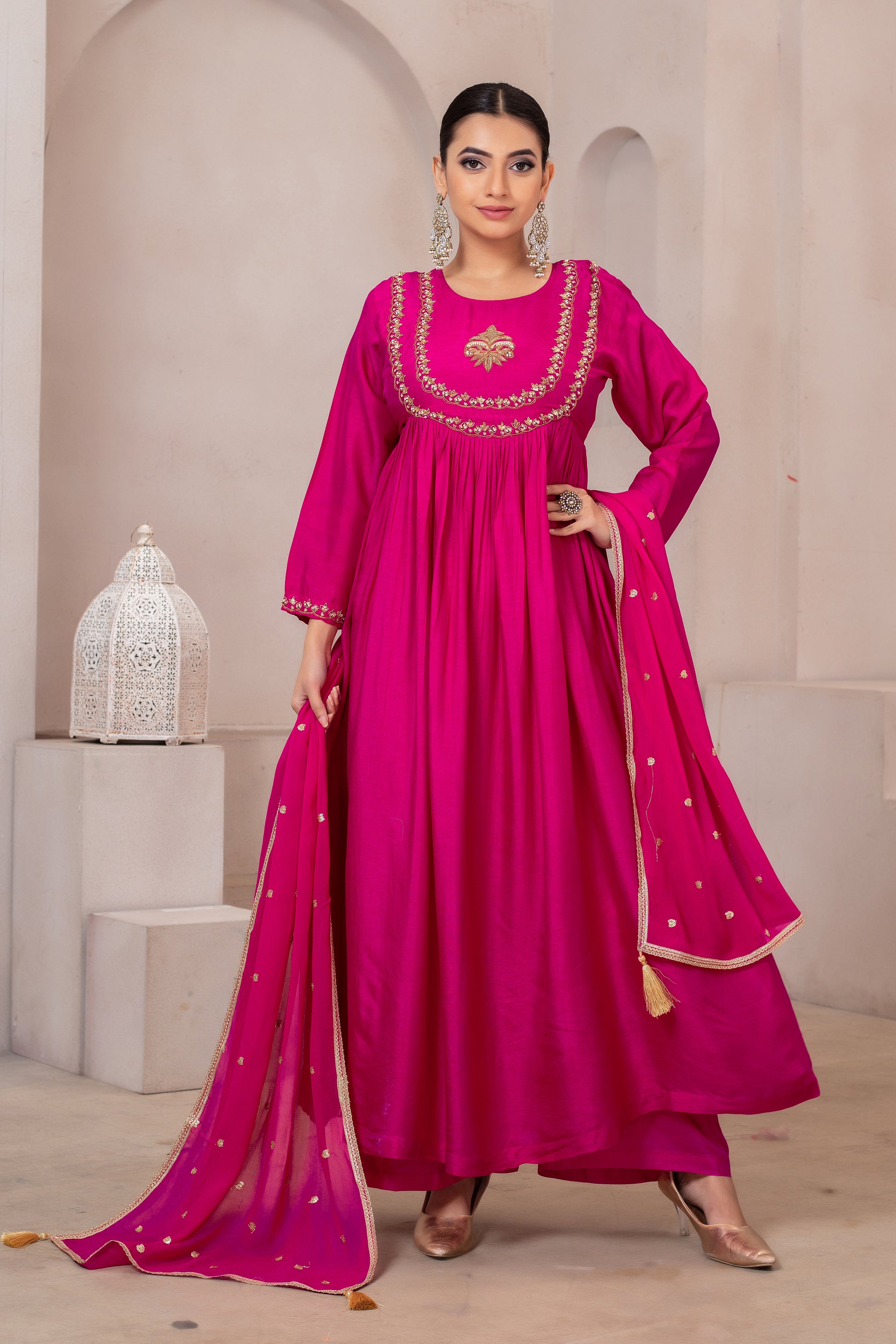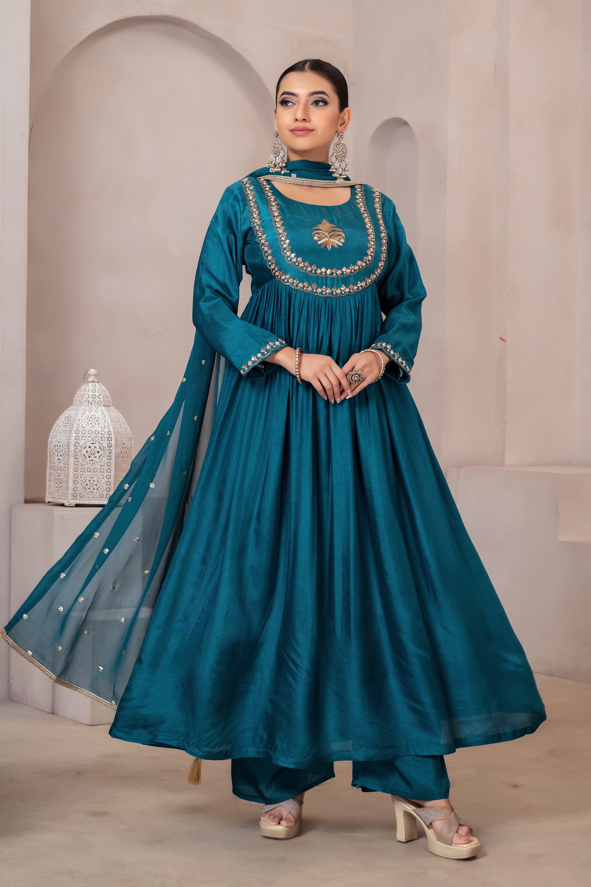 Designer Modal Fabric Ensemble with Zardosi, Moti & Cutdana Handwork and Georgette Dupatta