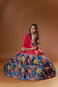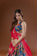 This exclusive designer creation by Kalpanas Creations, Sindhu Bhavan beautifully blends traditional mirror artistry with luxurious silk and a dramatic flair, making it a standout piece for those who appreciate heritage elegance and premium design.