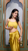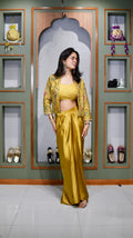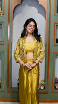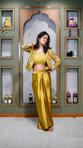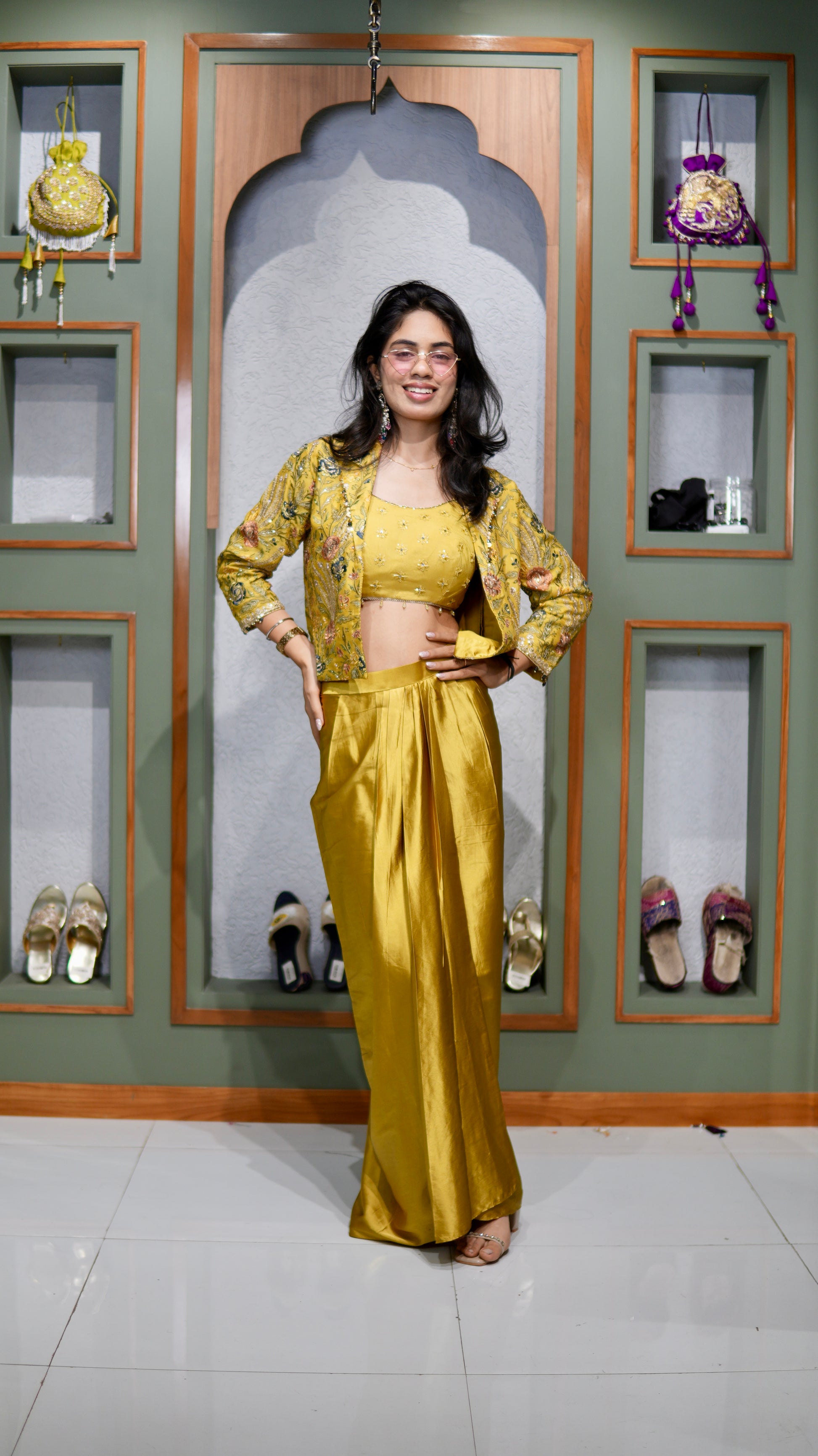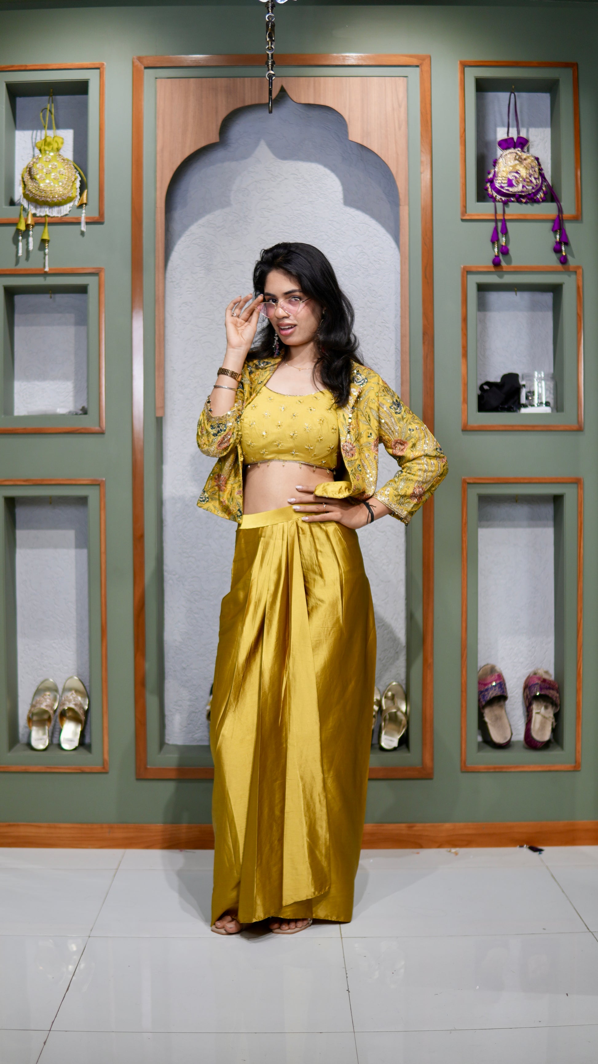 Perfect for Haldi ceremonies, intimate wedding celebrations, or contemporary festive occasions, this outfit brings together luxury craftsmanship and practical wearability in a unique Indo-western silhouette.