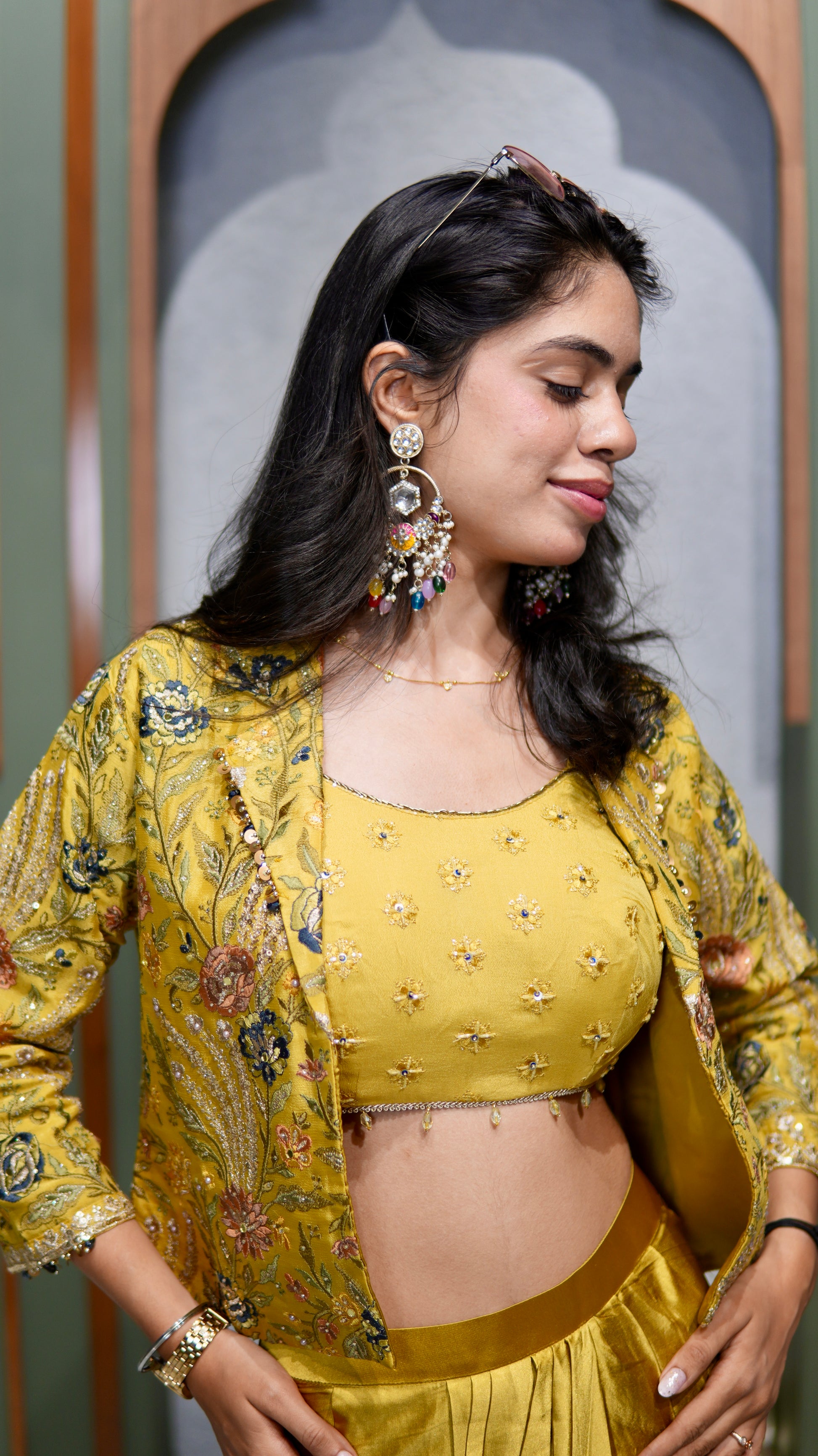 Boss Bride Haldi Indo-Western Set – Blazer, Pleat Skirt & Hand-Embroidered Blouse