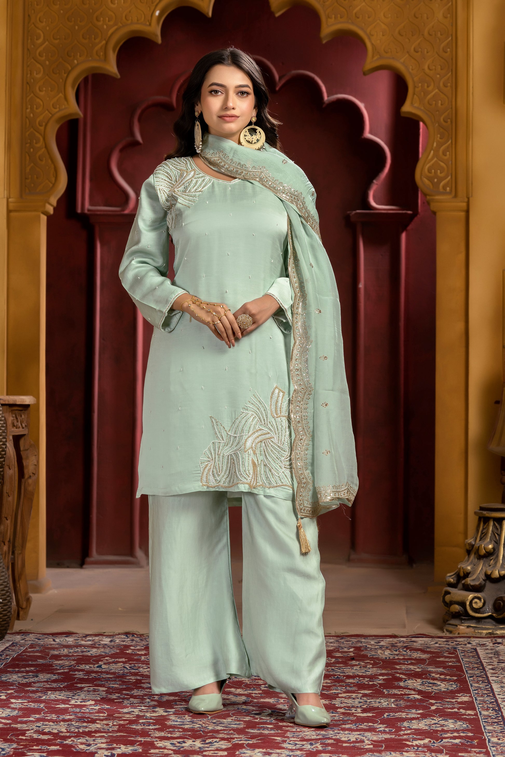 Every element is thoughtfully designed to ensure a flattering fit and timeless appeal, making this piece a standout addition to any festive or fusion ensemble.