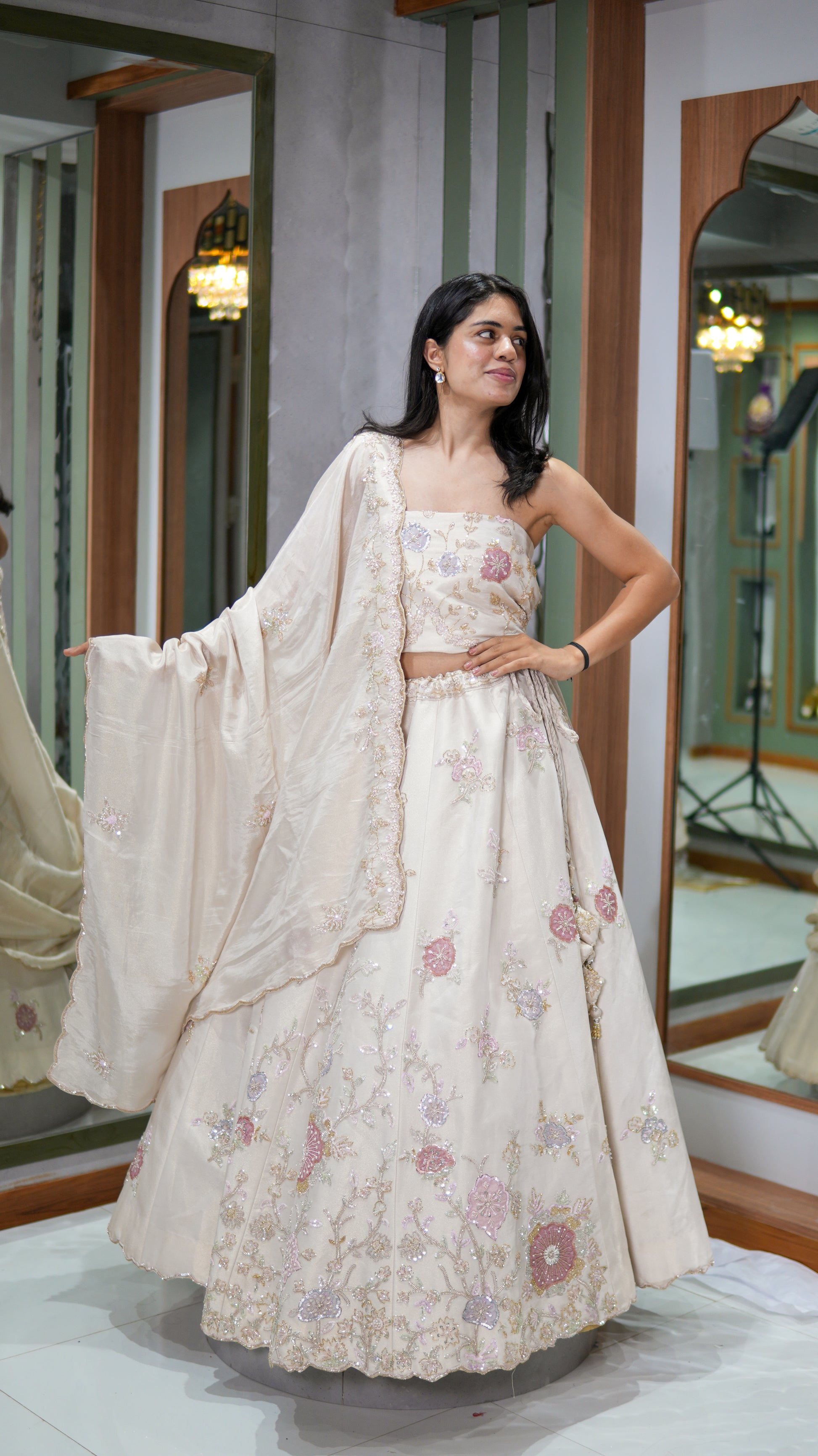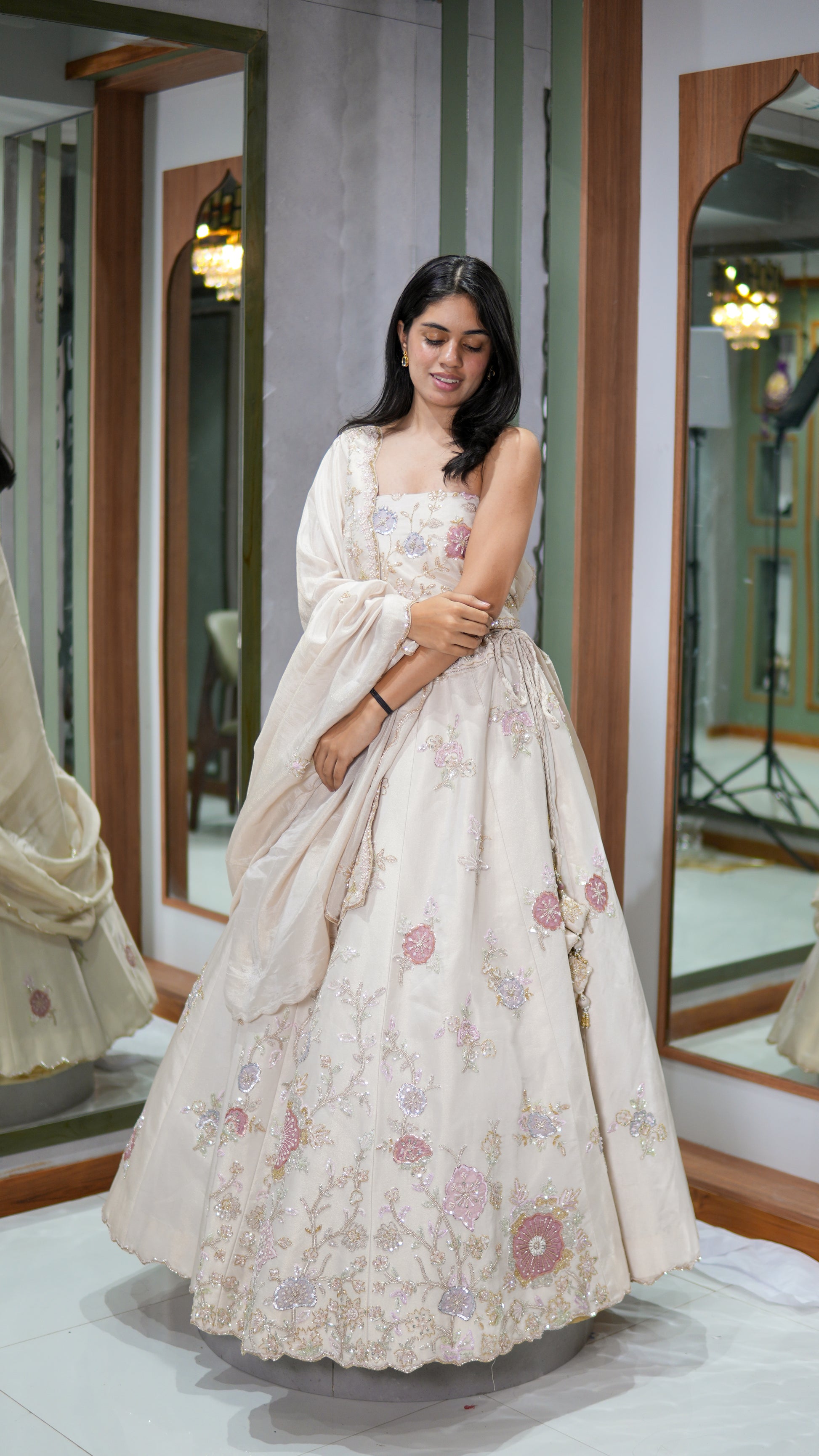 Versatile lehenga styling (heavy or light front-facing option)