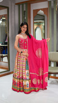 Step into timeless elegance with this Premium Designer Vintage Chaniya Ensemble, thoughtfully curated by Kalpanascreations Sindhubhavan. Blending rich traditional aesthetics with modern silhouettes, this outfit is crafted for women who love statement fashion with cultural depth—perfect for Navratri, festive evenings, sangeet nights, and grand celebrations.