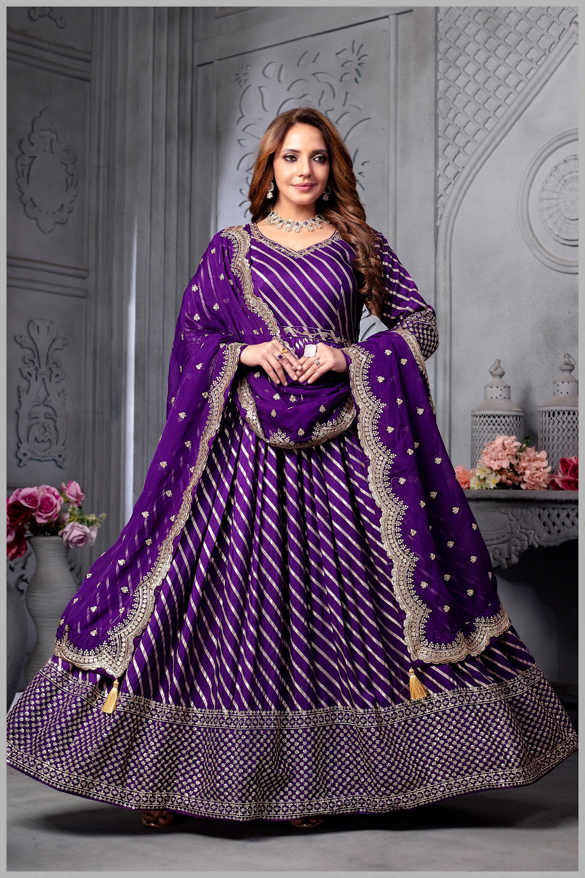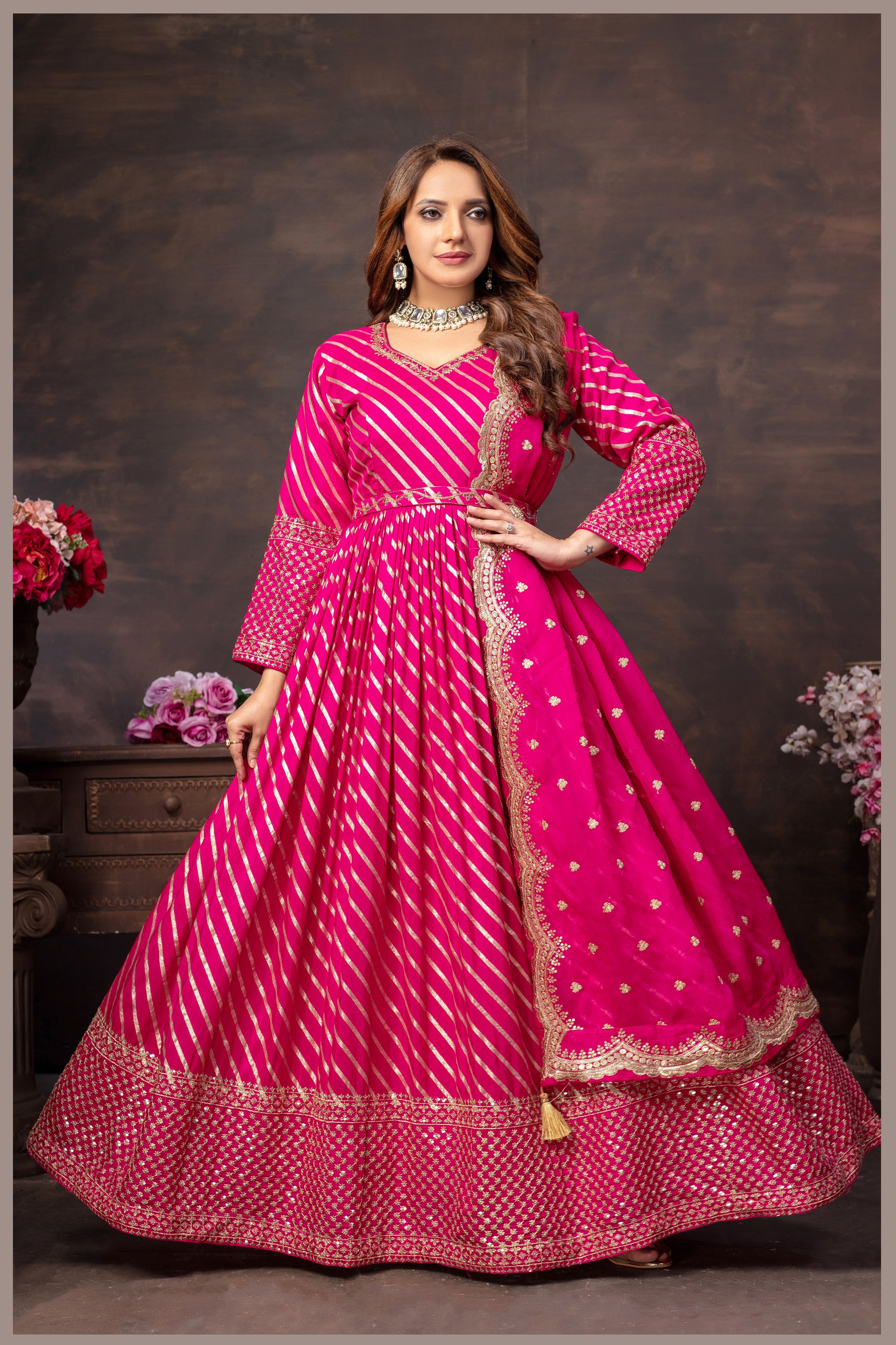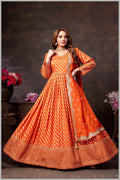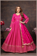 Designer Pure Dola Silk Leheriya Weaving Gown Set