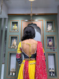 Yellow & Red Bombay Silk Chaniya with 18-Meter Majestic Flair