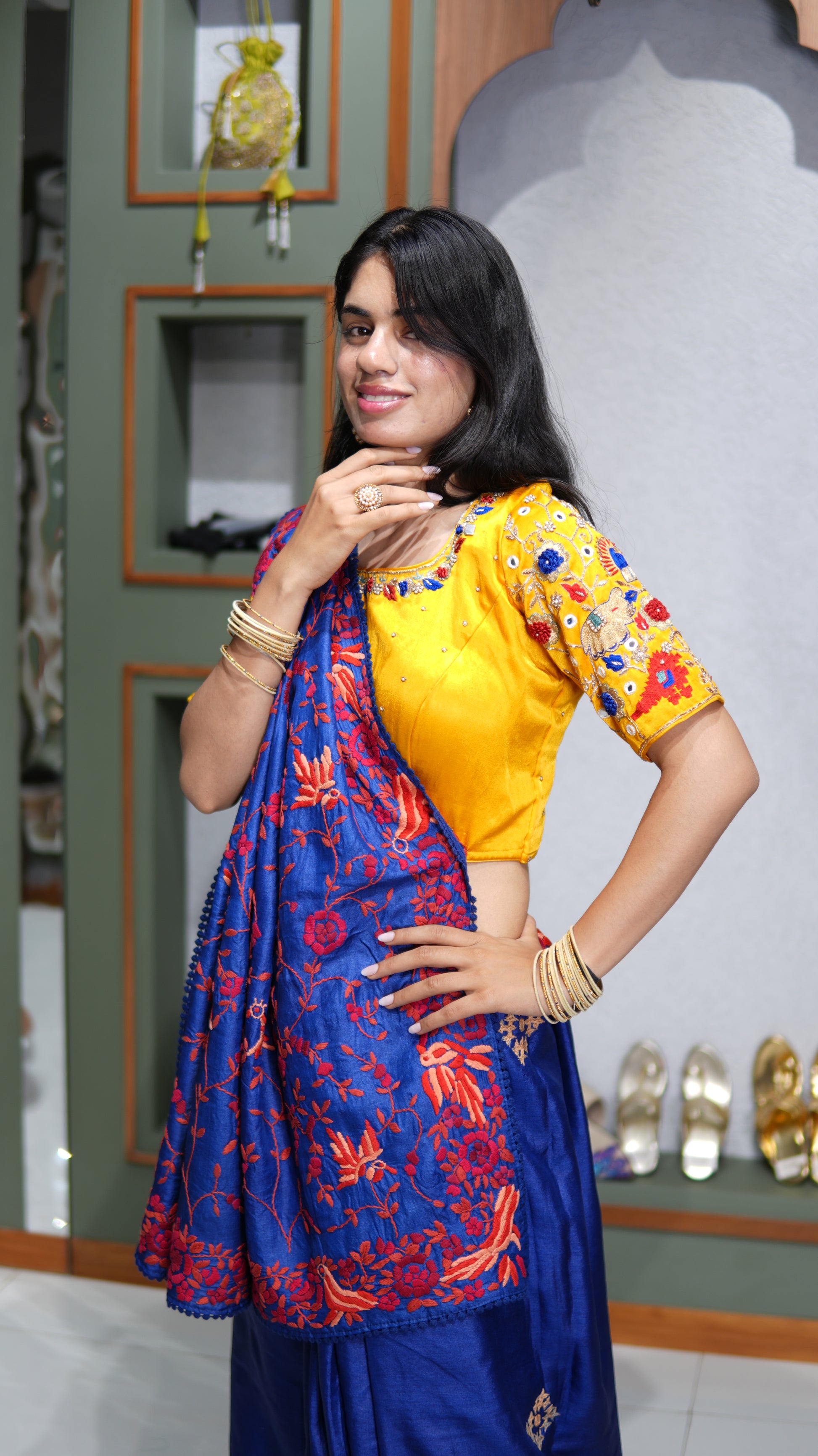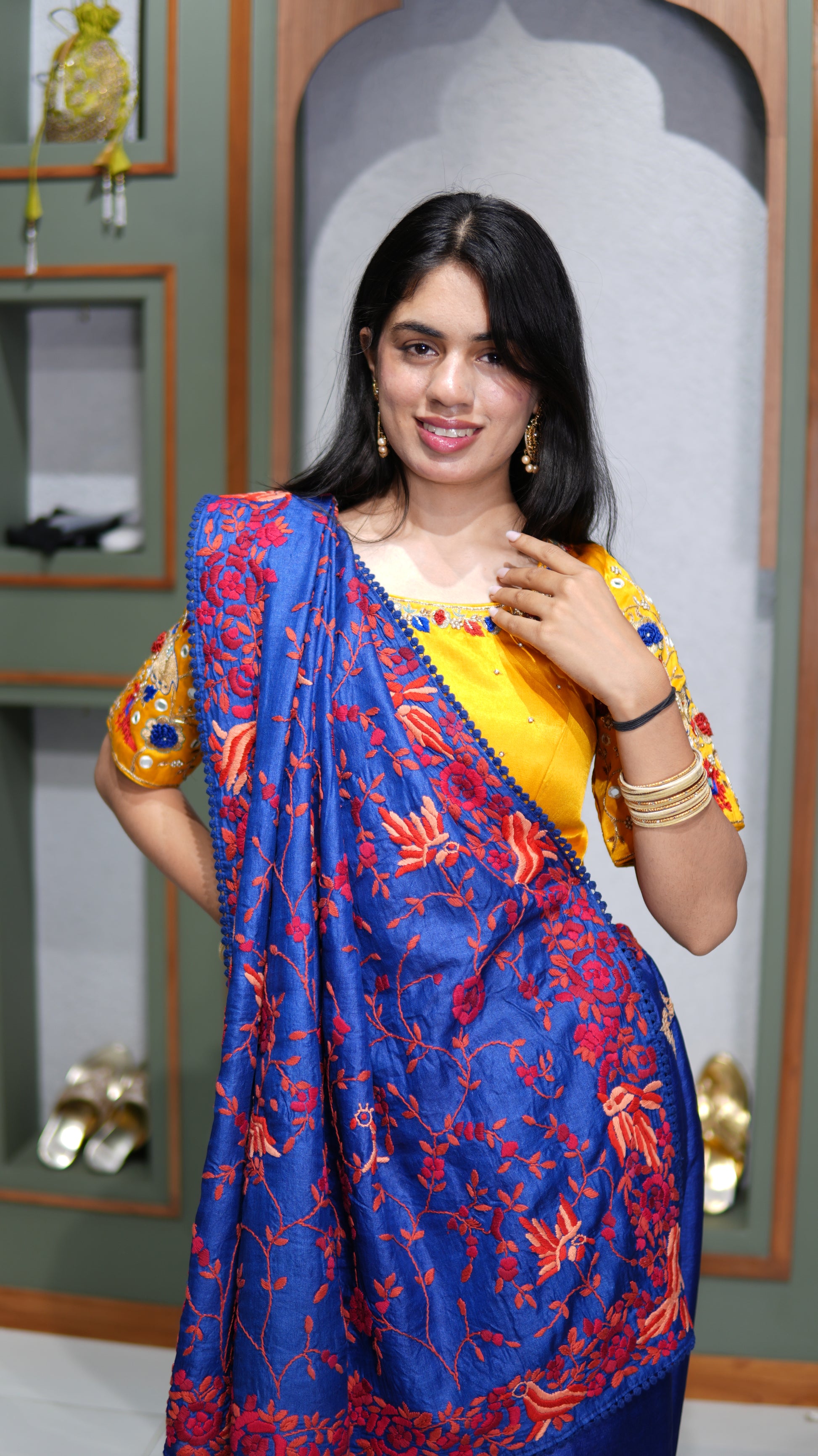 Designer Pure Tussar Silk Saree with Kantha–Rabari Fusion