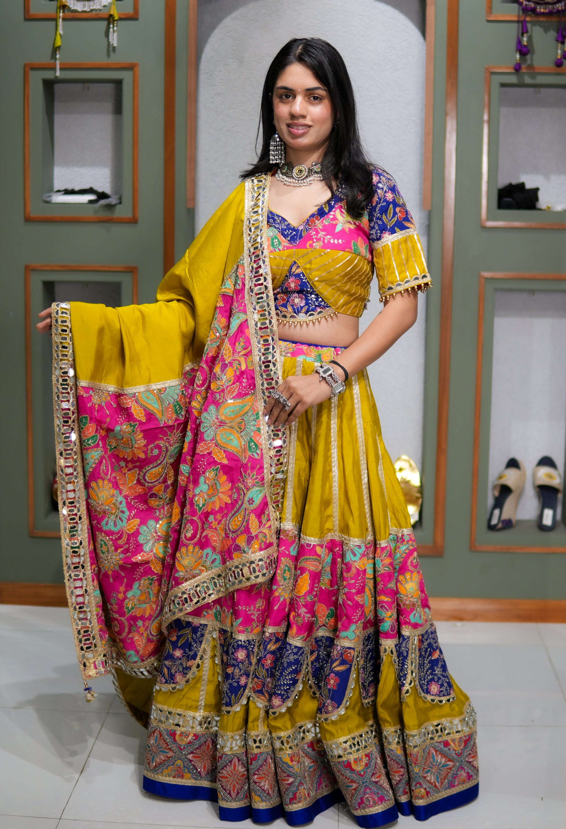Authentic real mirrorwork embroidery for radiant elegance