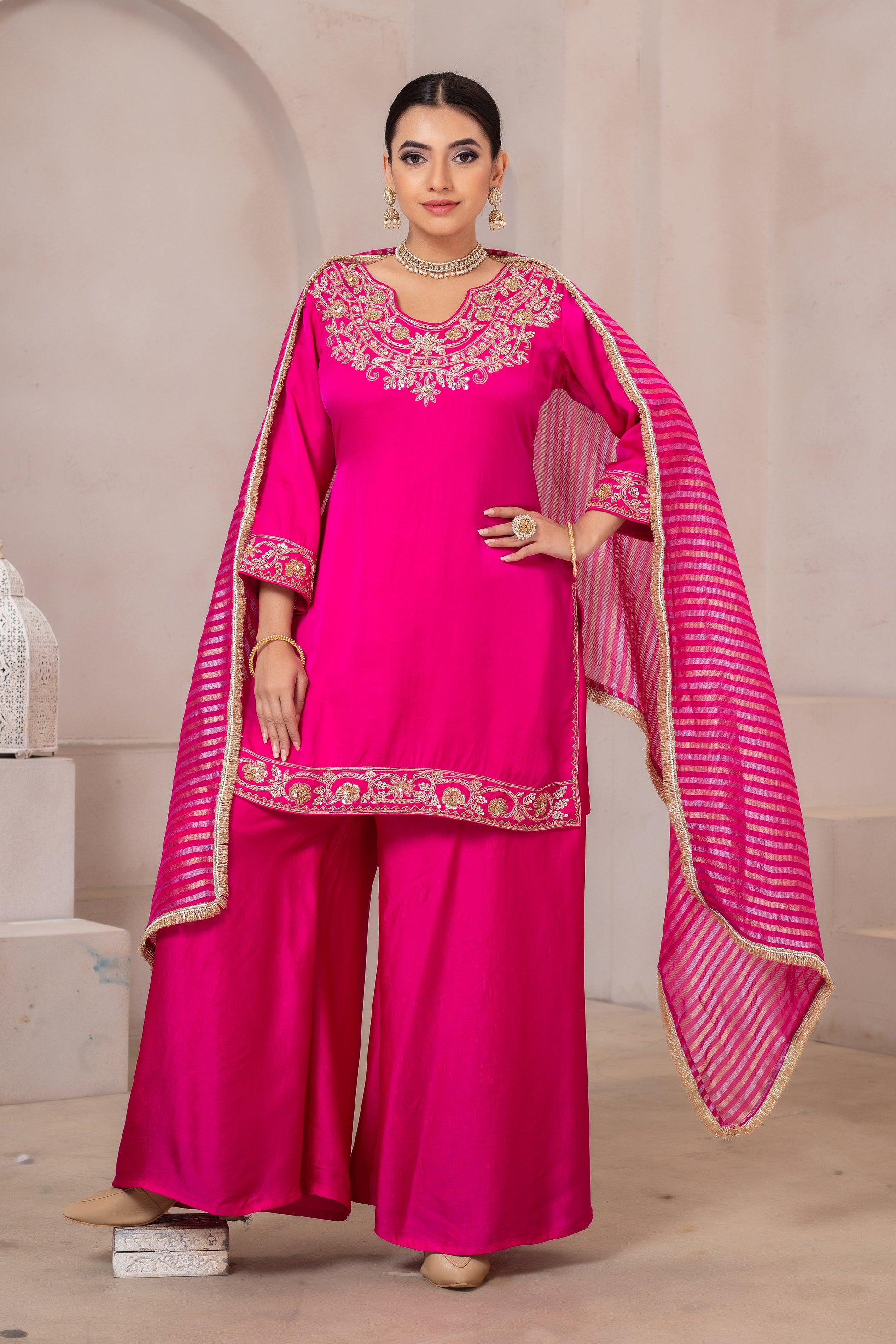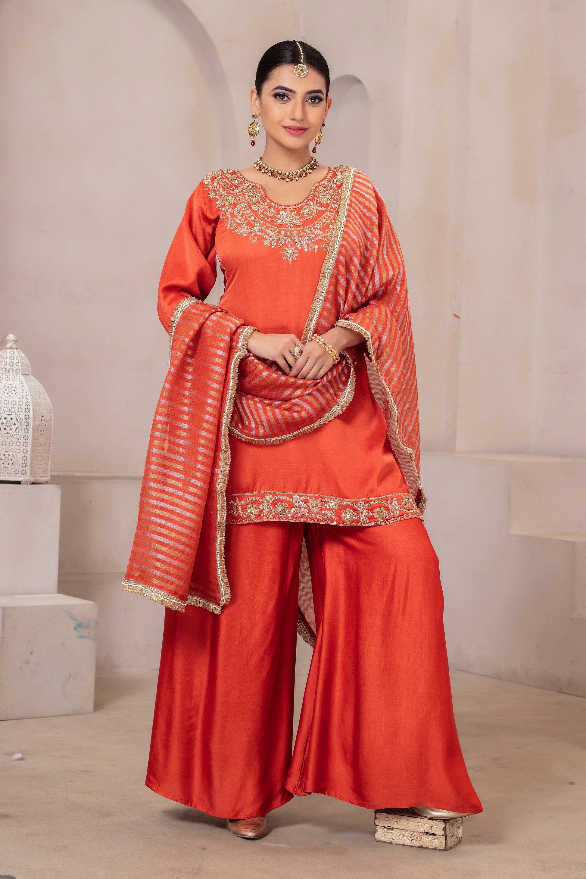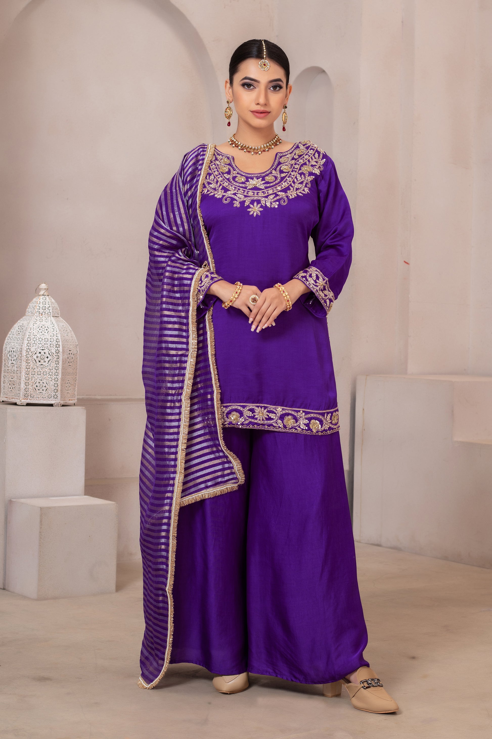 Ideal for weddings, festive celebrations, receptions, sangeet functions, and special gatherings, this ensemble is designed for women who love detailed craftsmanship and timeless elegance.