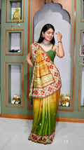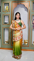 Crafted from pure Tussar silk material, this saree is known for its natural texture, lightweight feel, and graceful drape. The fabric carries an earthy richness with a subtle sheen, making it perfect for those who appreciate understated elegance and premium silk craftsmanship.