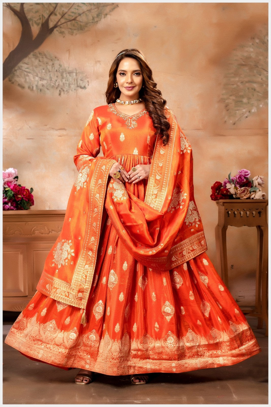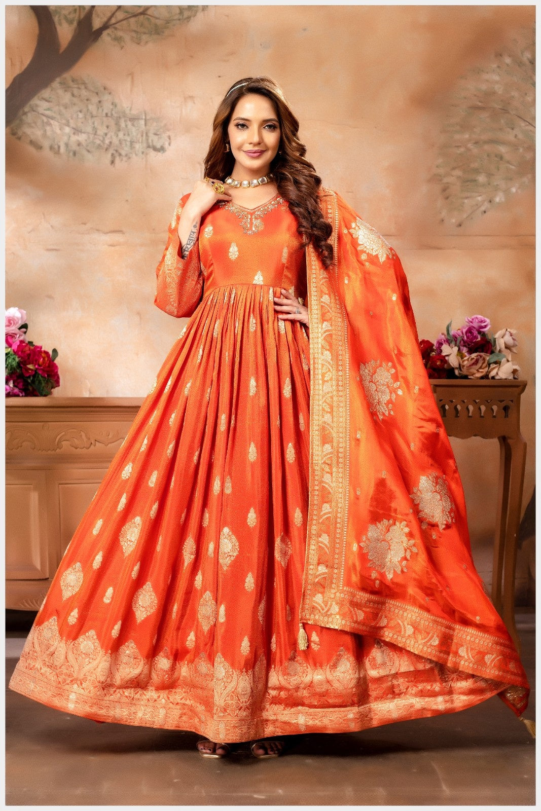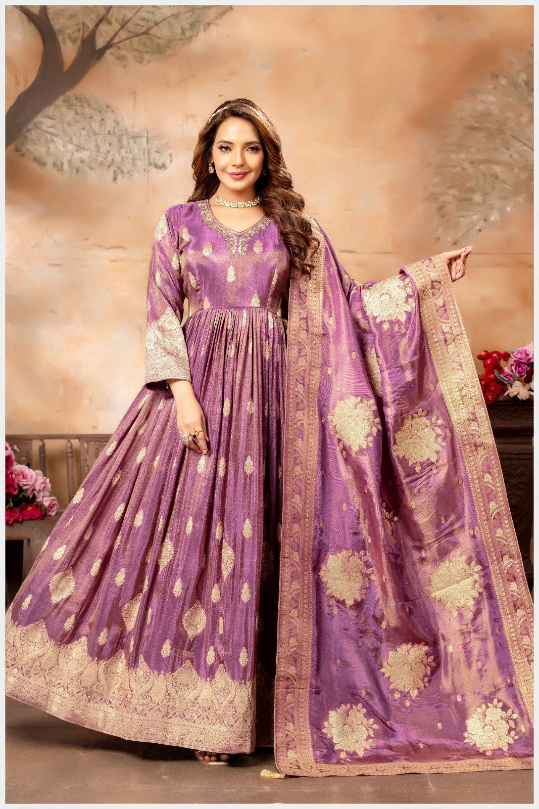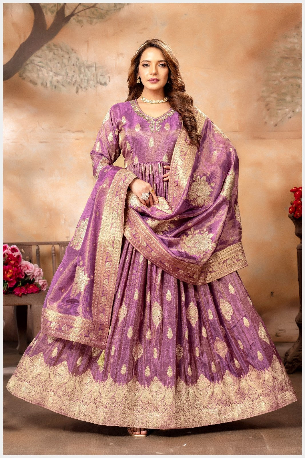 Designer Pure Tissue–Based Heritage Anarkali Set