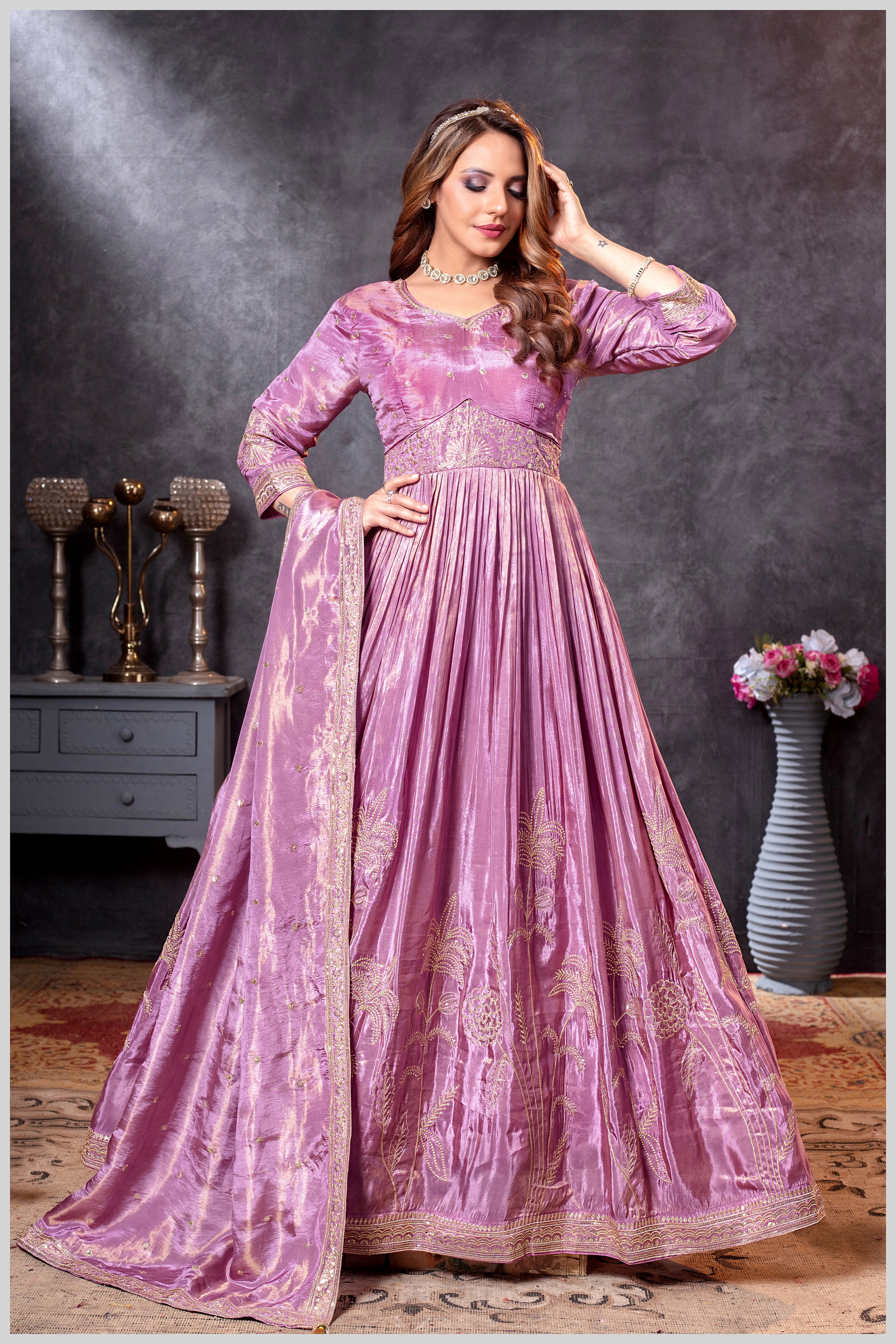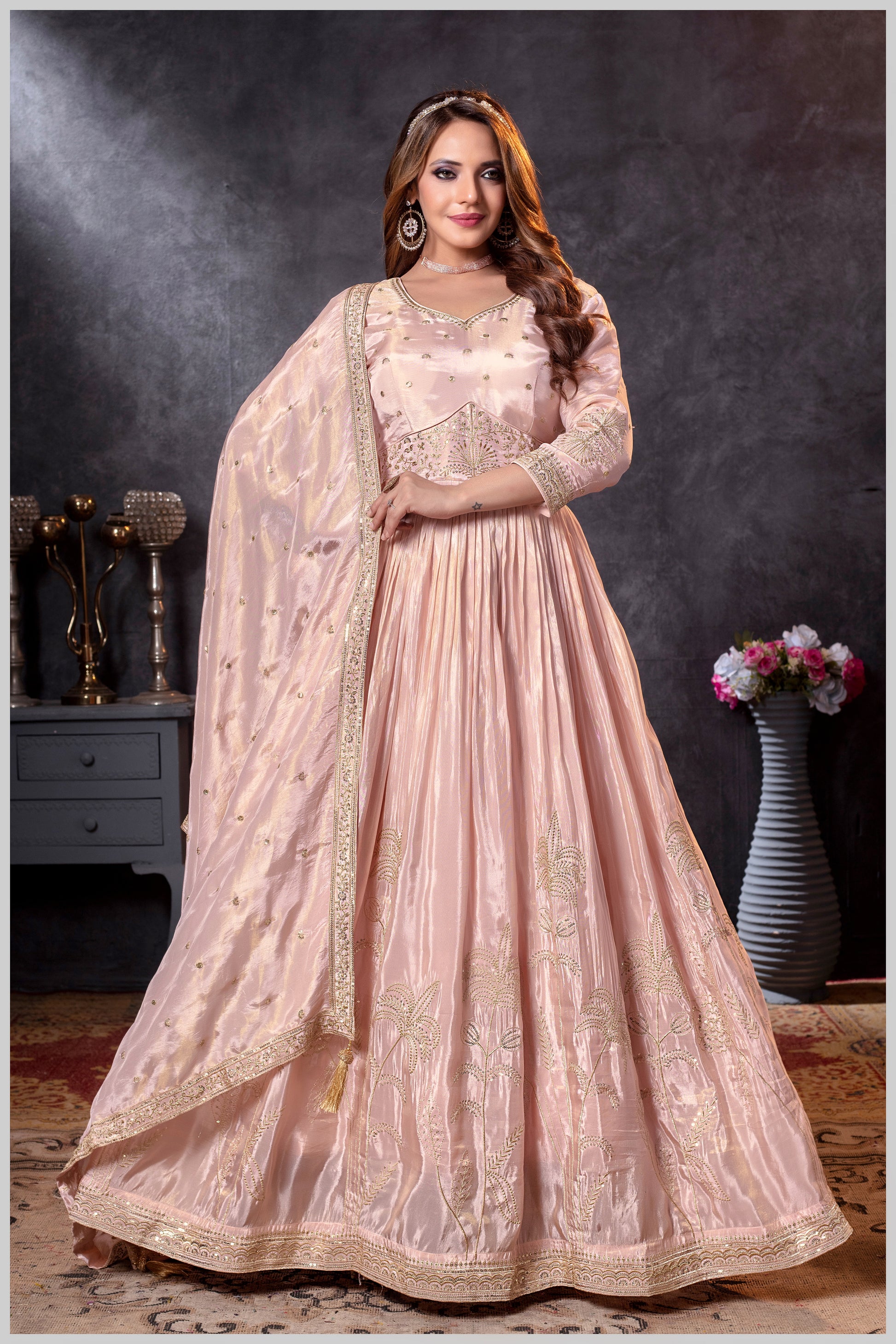 Designer Pure Tissue Fabric Ensemble with 2.5 Metre Flair