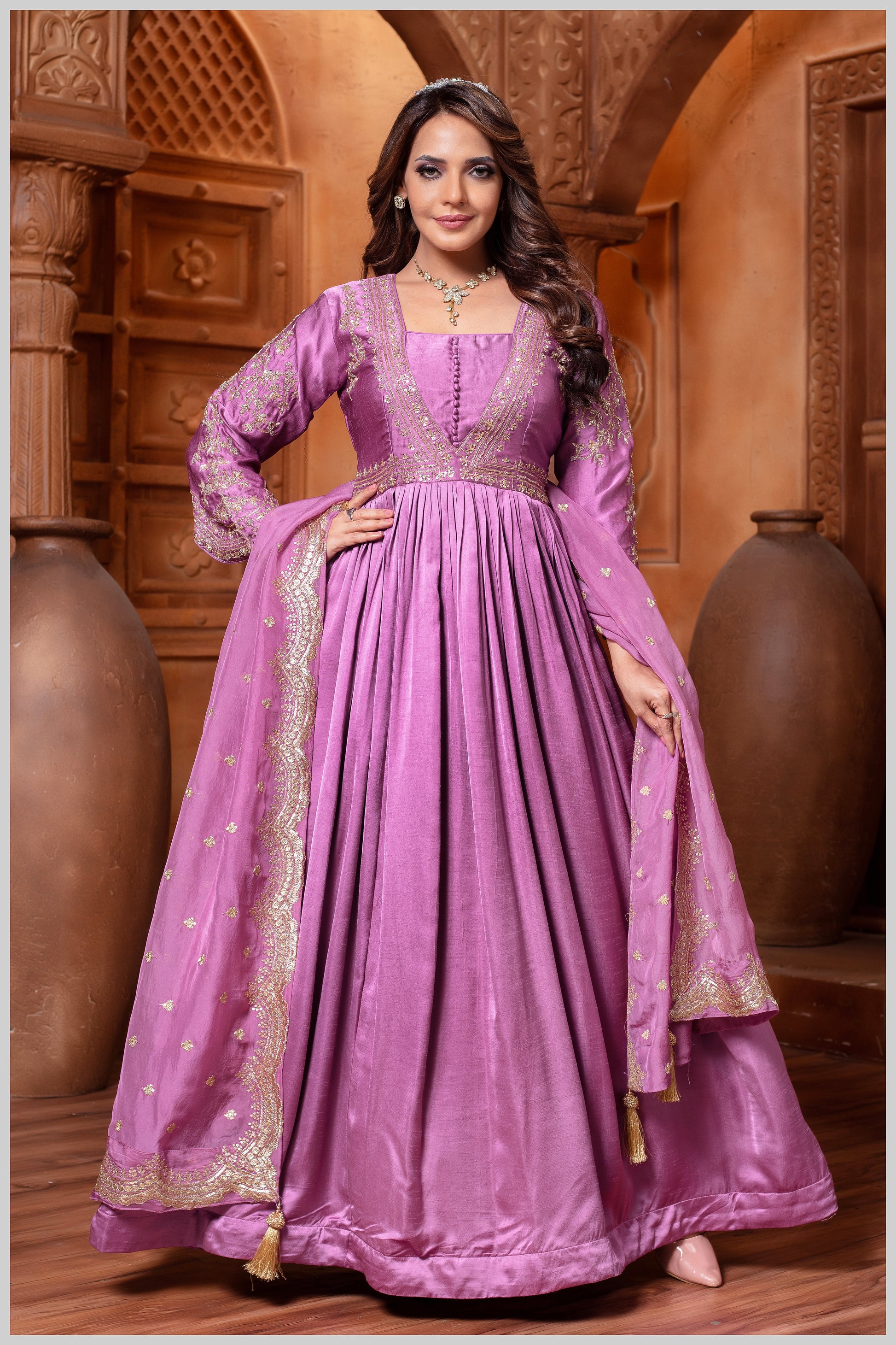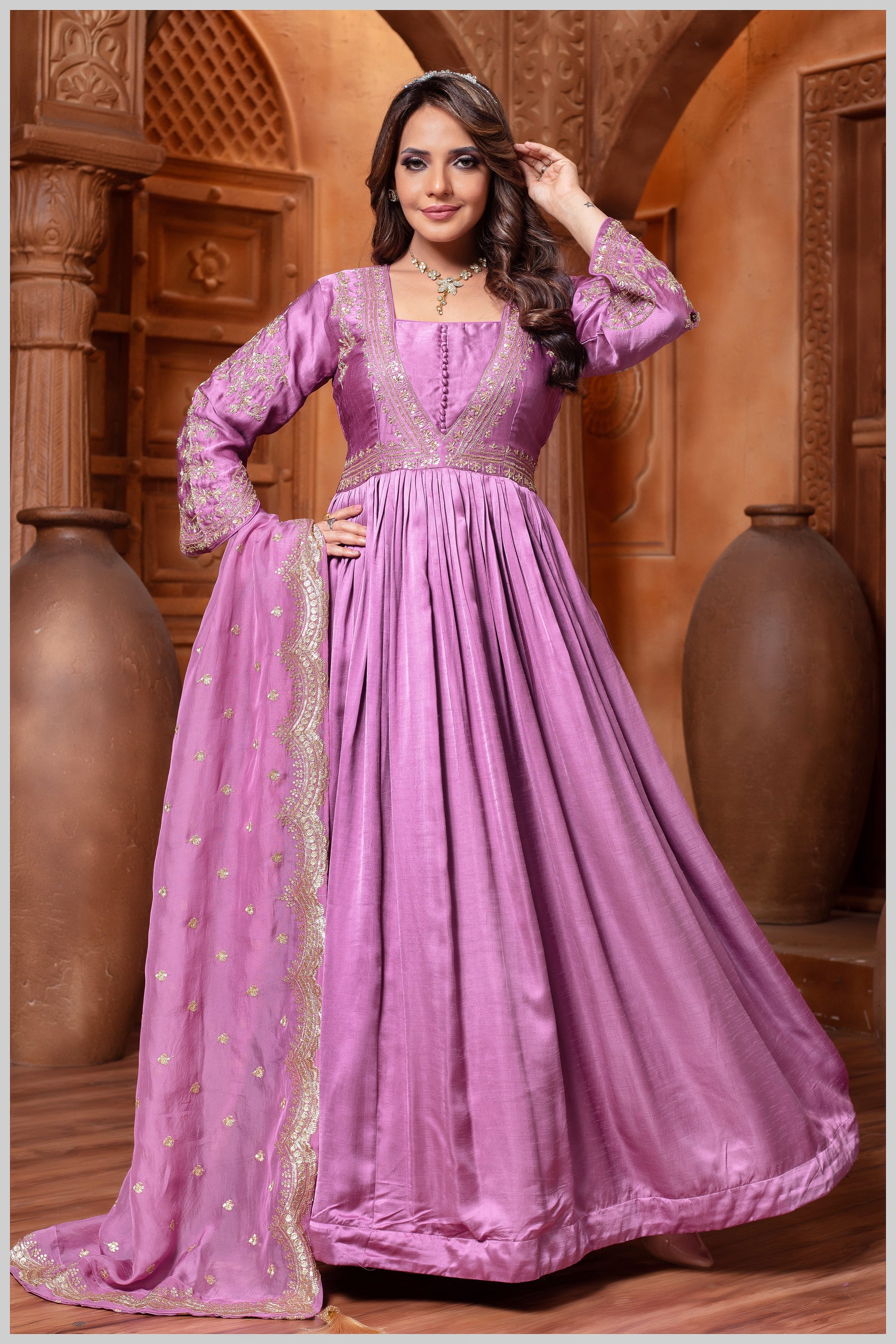 This exclusive designer creation by Kalpanas Creations, Sindhu Bhavan blends premium fabric, thoughtful detailing, and classic elegance—making it a graceful addition to your everyday festive and semi-formal ethnic wardrobe.