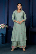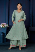 This exclusive designer creation by Kalpanas Creations, Sindhu Bhavan beautifully combines luxurious fabric and refined detailing, making it a timeless and versatile addition to your ethnic and fusion wardrobe.
