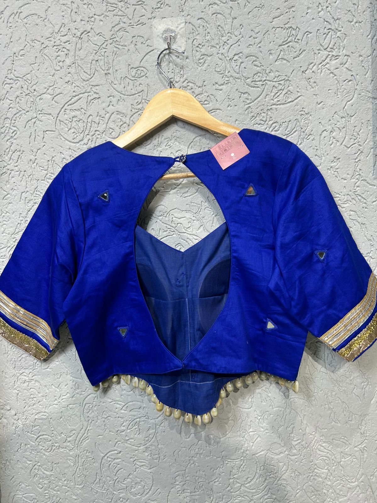 With a fancy designer cut, this blouse flatters the form and brings a bold sophistication to your ensemble. It’s ideal for pairing with lehengas, Chaniyas, or even sarees for a standout festive or wedding look.