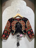 The modern cut and tailored fit offer a flattering shape, perfect for pairing with lehengas, sarees, or indo-western ensembles. Whether it's the delicate neckline, elegant sleeveless or half-sleeve options, or the lavish Katchi embroidery, every element is thoughtfully crafted to enhance your style.
