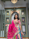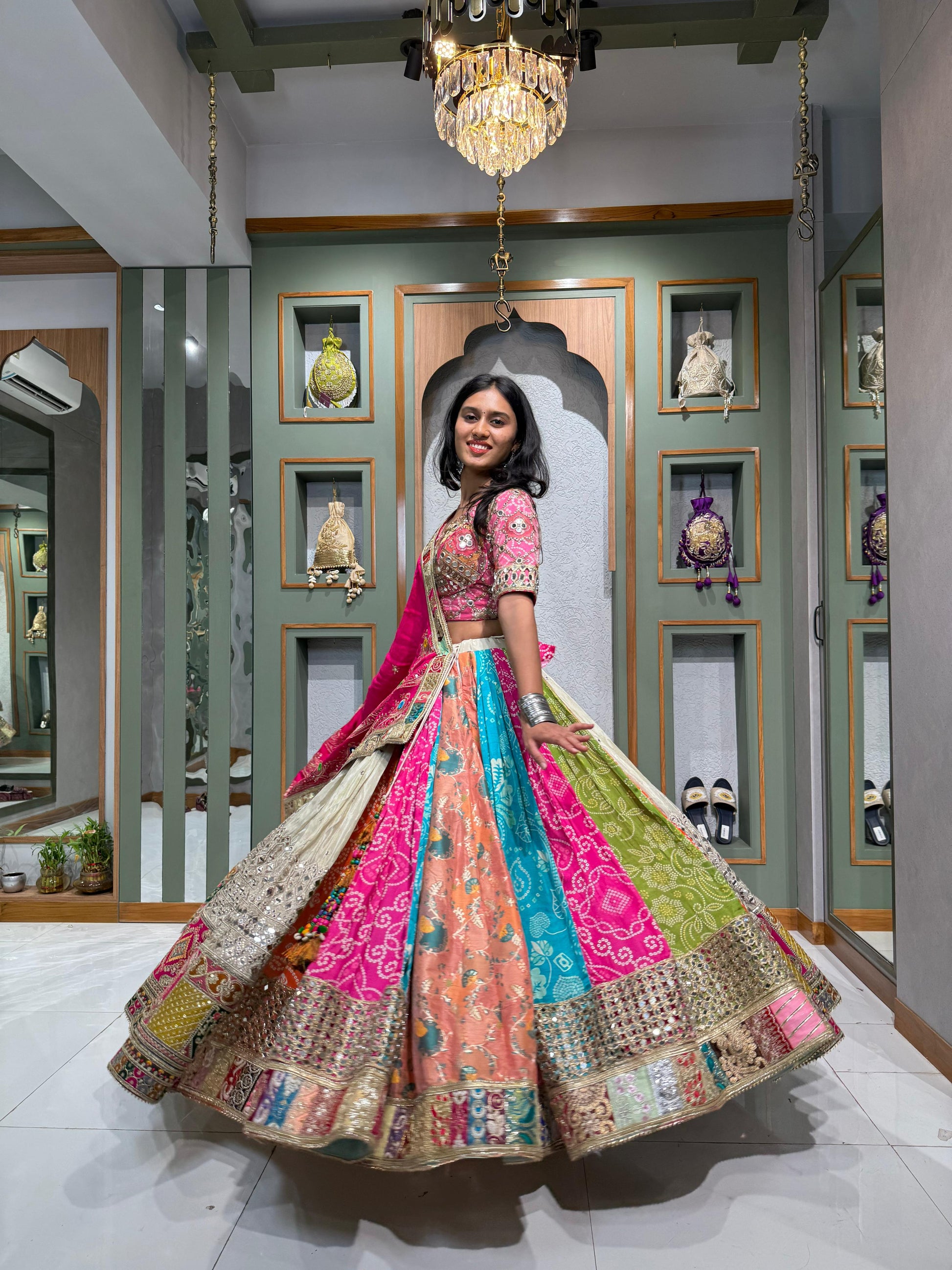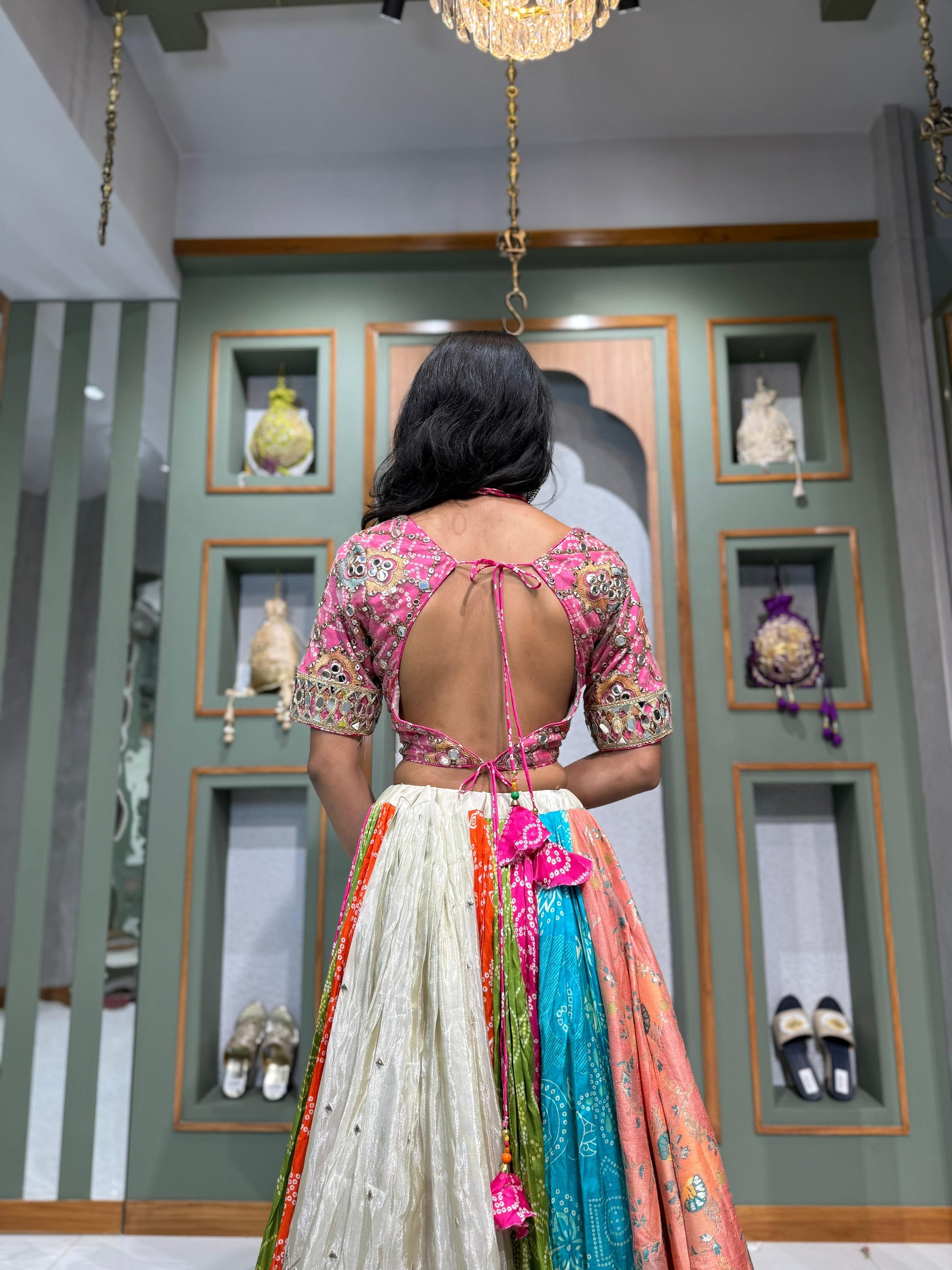 Multi-Kali Bombay Tissue Chaniya with Bandhani & Mirror Work