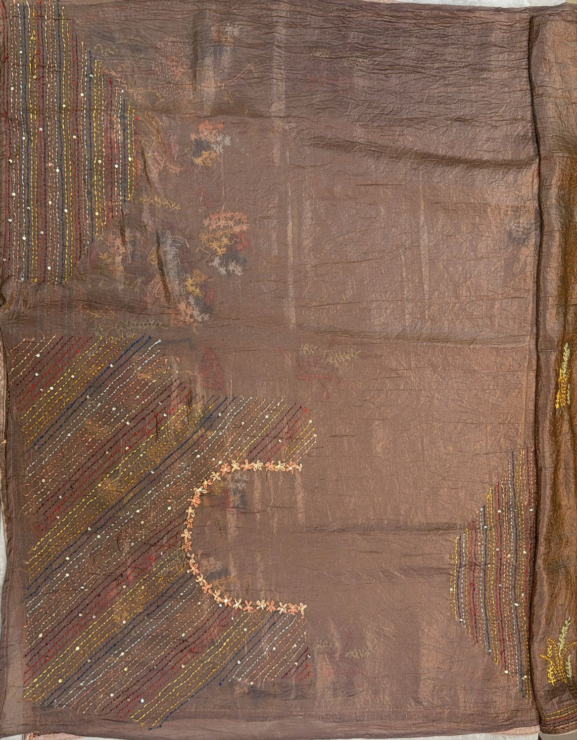 Designer Semi Tussar Silk Saree with Kantha–Rabari Fusion