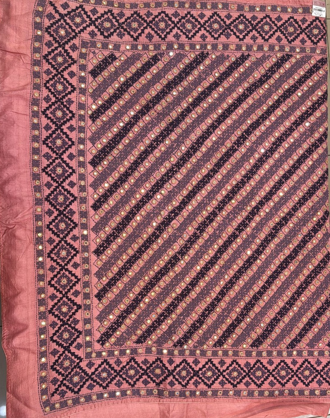• Kantha–Rabari fusion handwork on semi Tussar silk