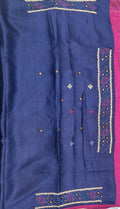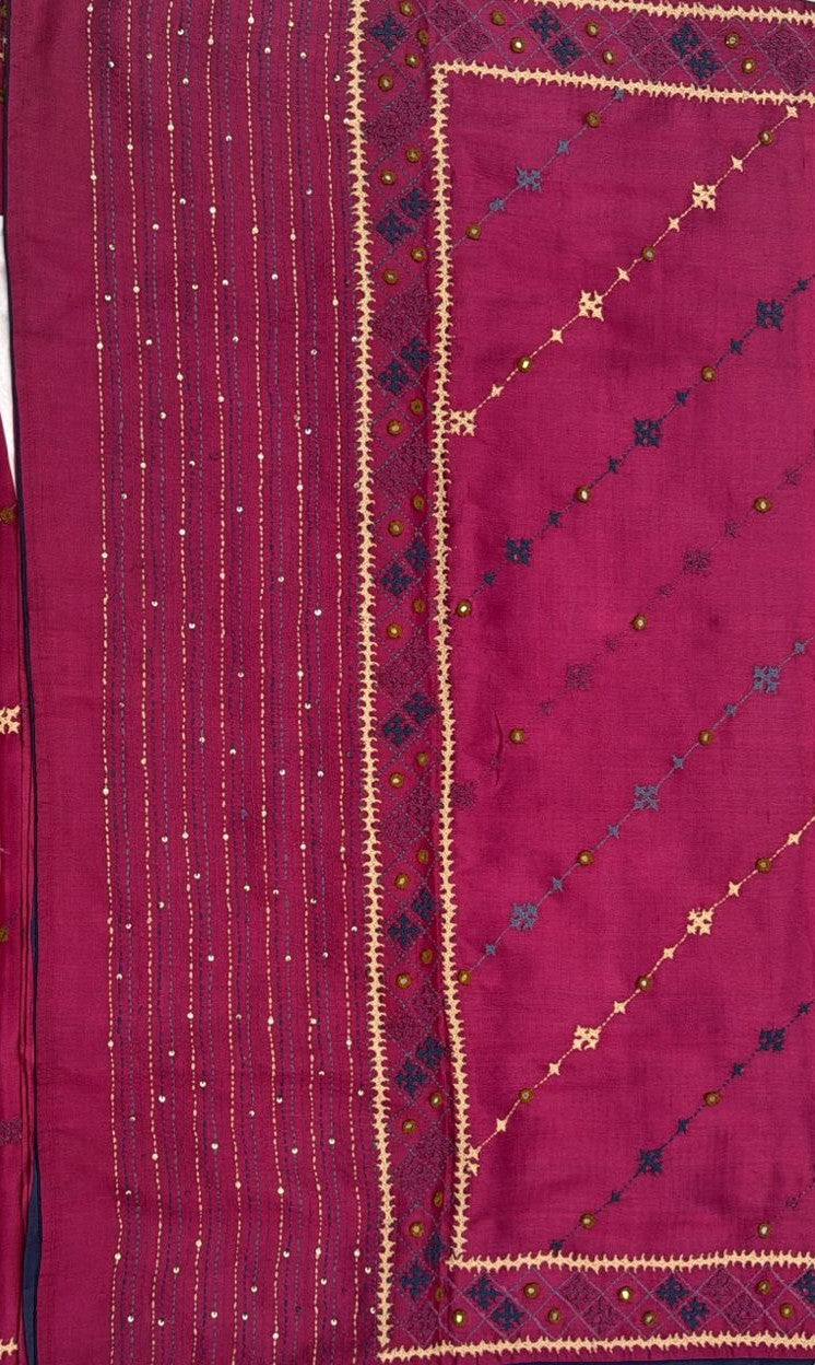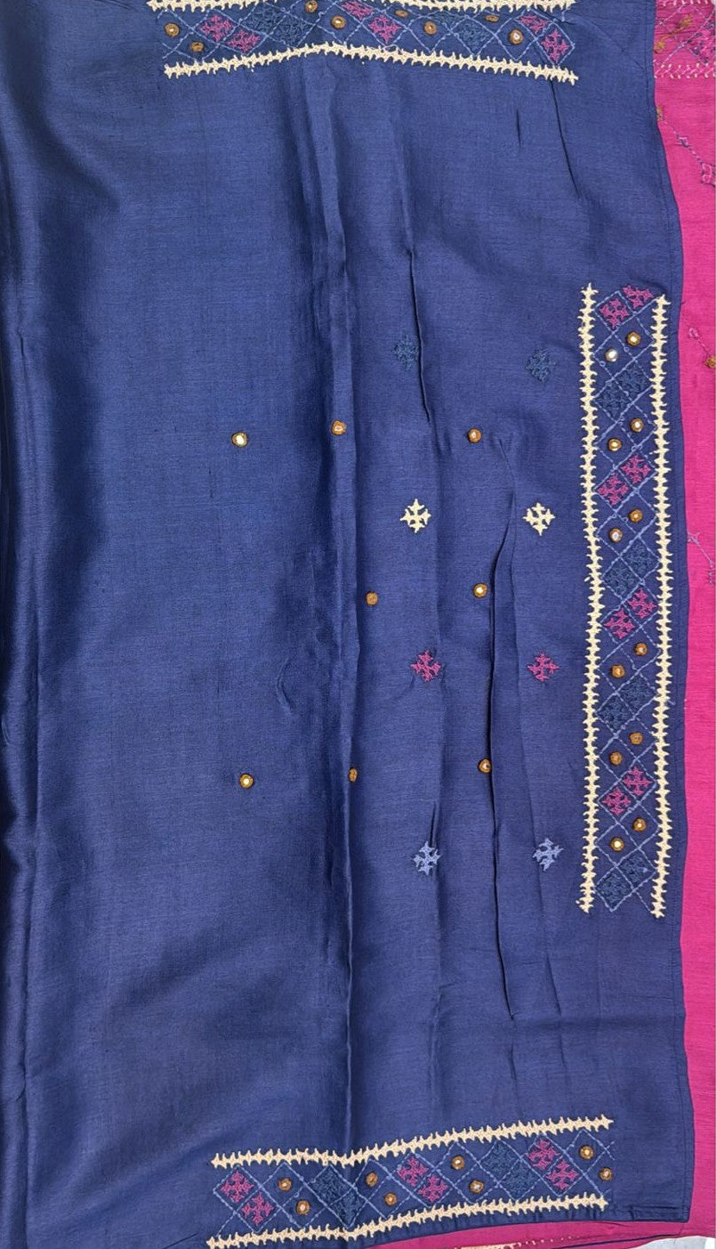 • Kantha–Rabari fusion handwork on semi Tussar silk