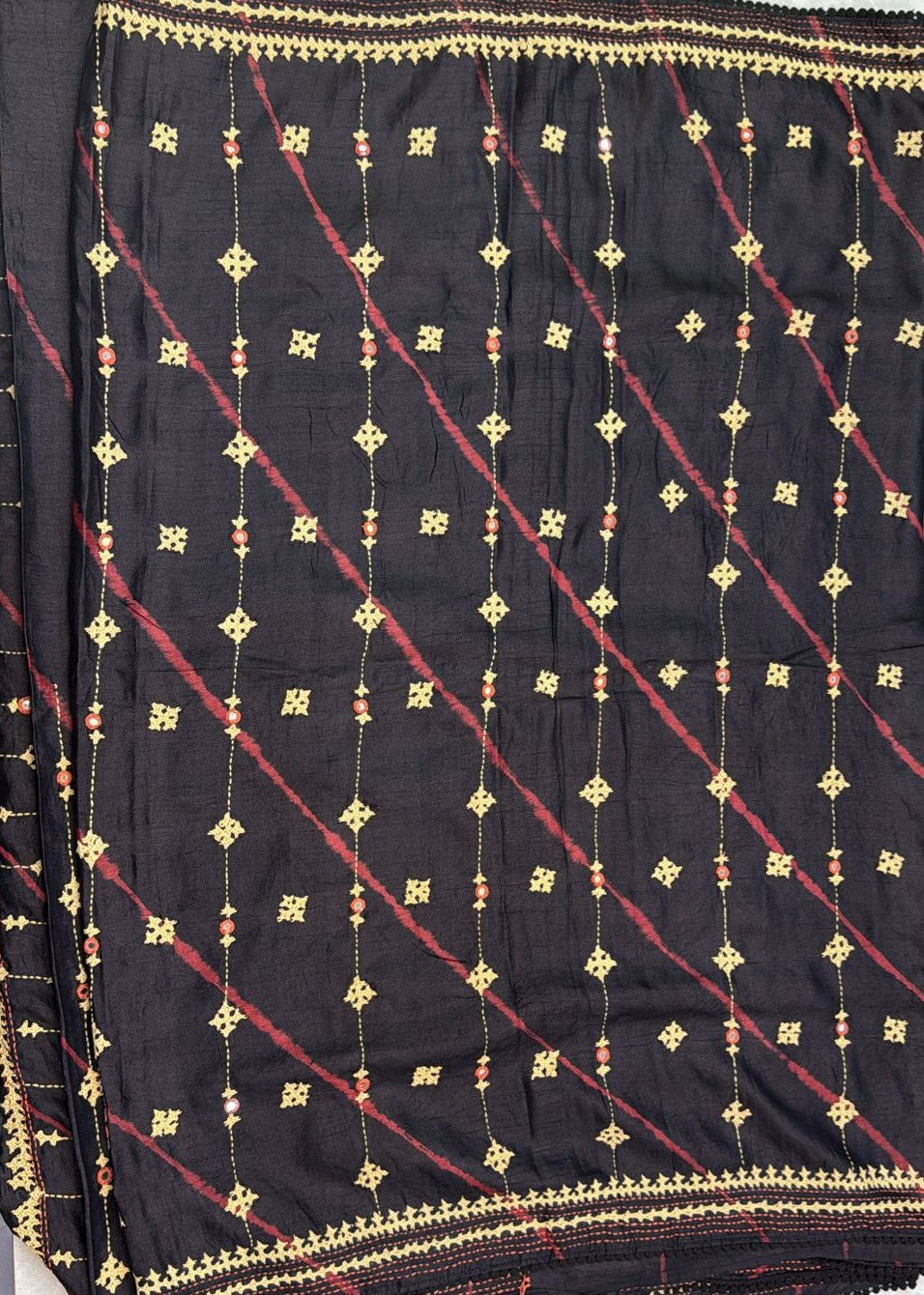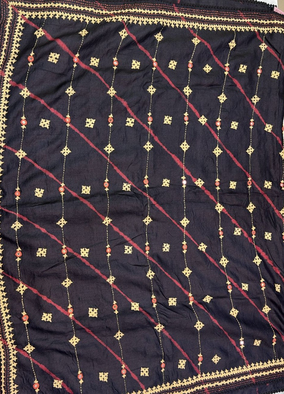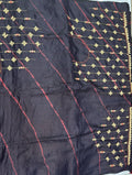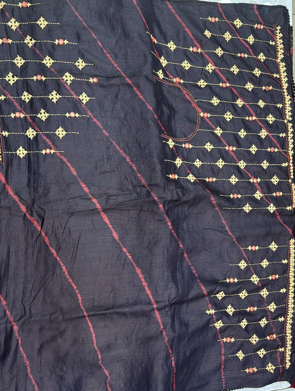 • Kantha–Rabari fusion handwork on semi Tussar silk