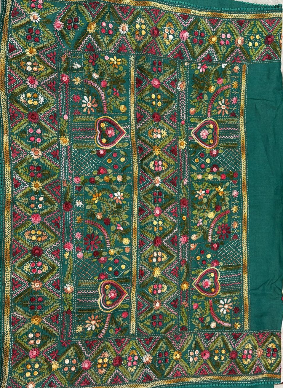 • Kantha–Rabari fusion handwork on semi Tussar silk