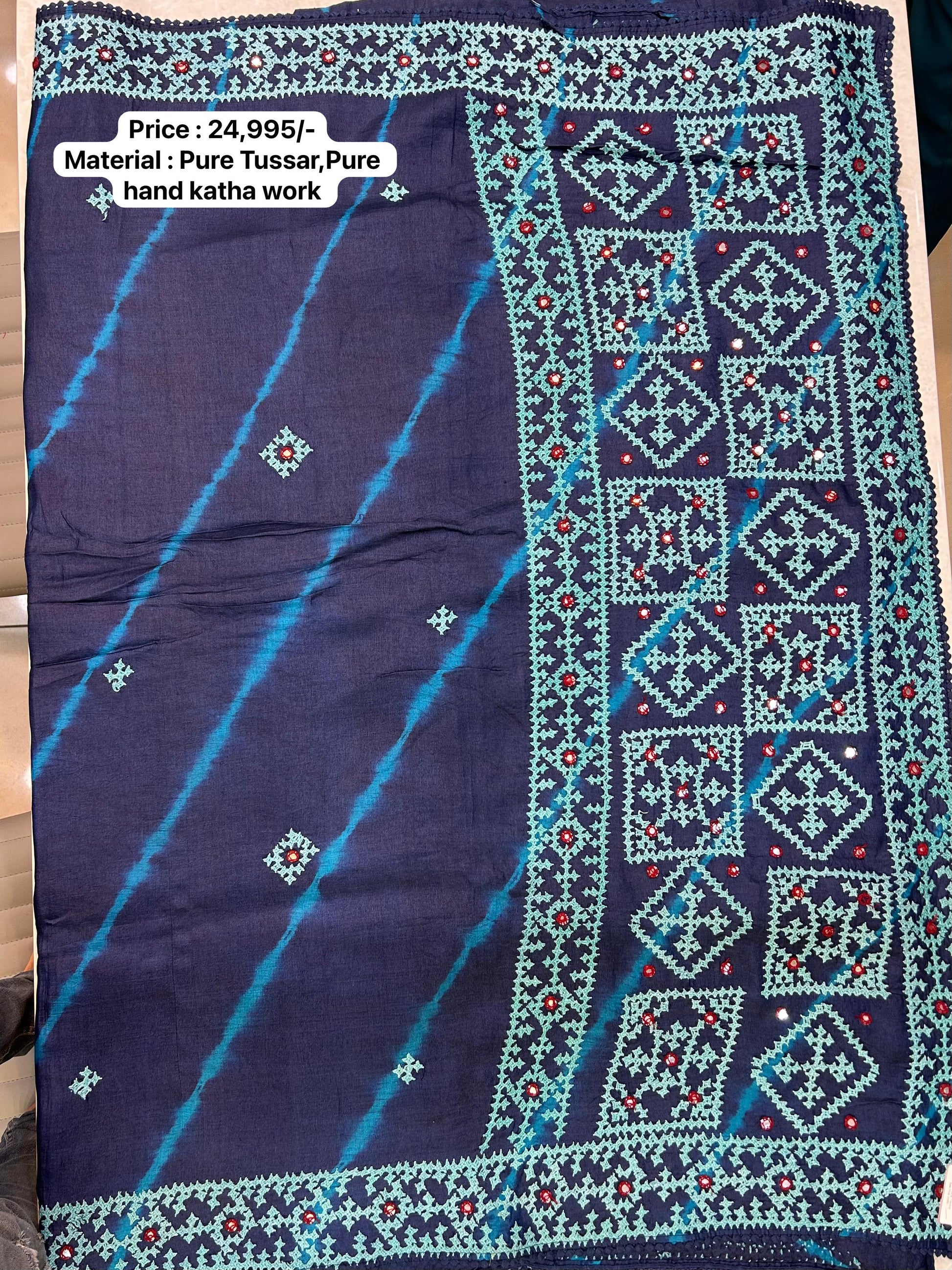 Kalpana’s Creations unveils a stunning DESIGNER pure tussar saree with hand Katha work, blending traditional artistry with a modern chic flair that will captivate everyone’s attention.