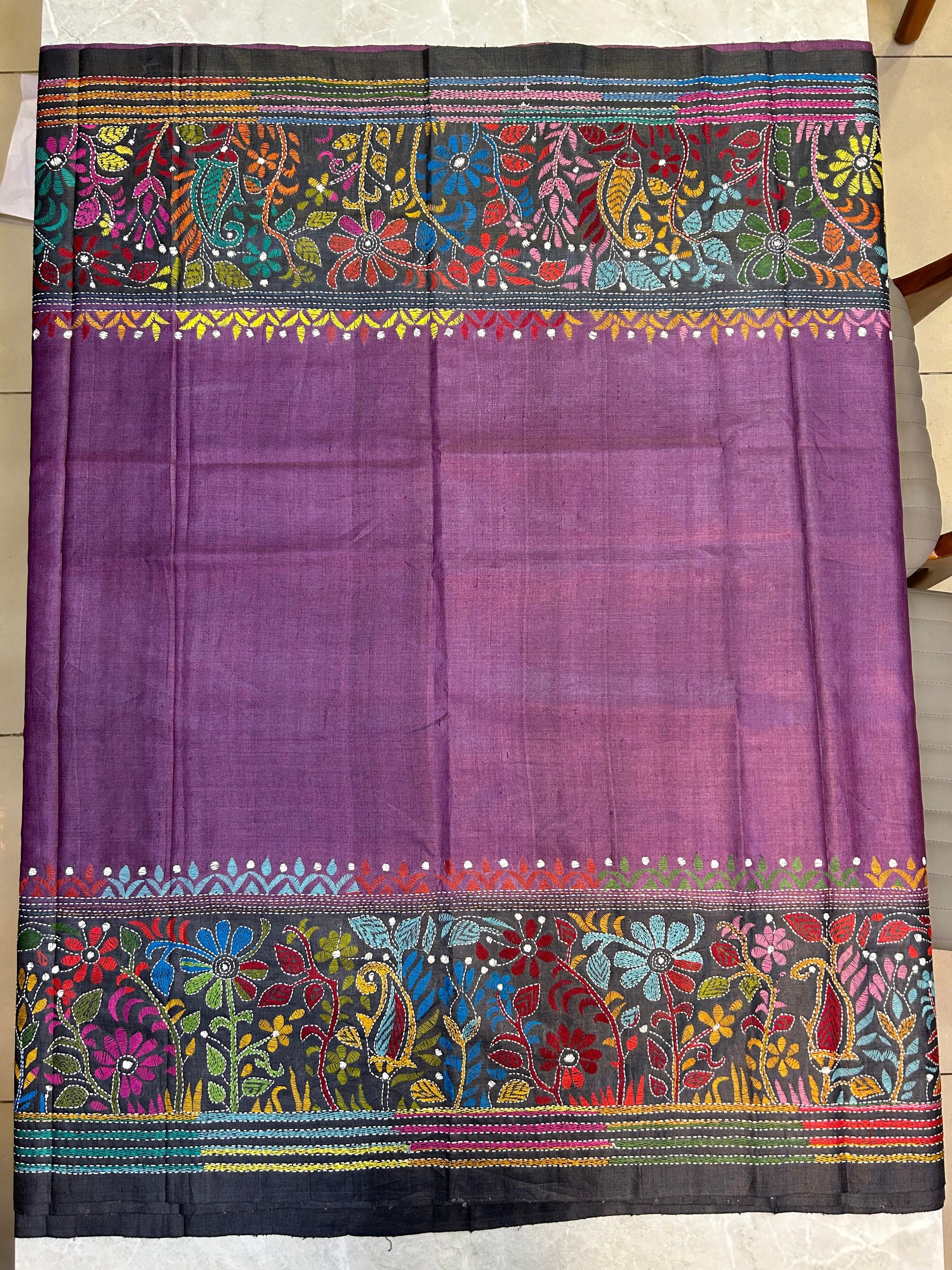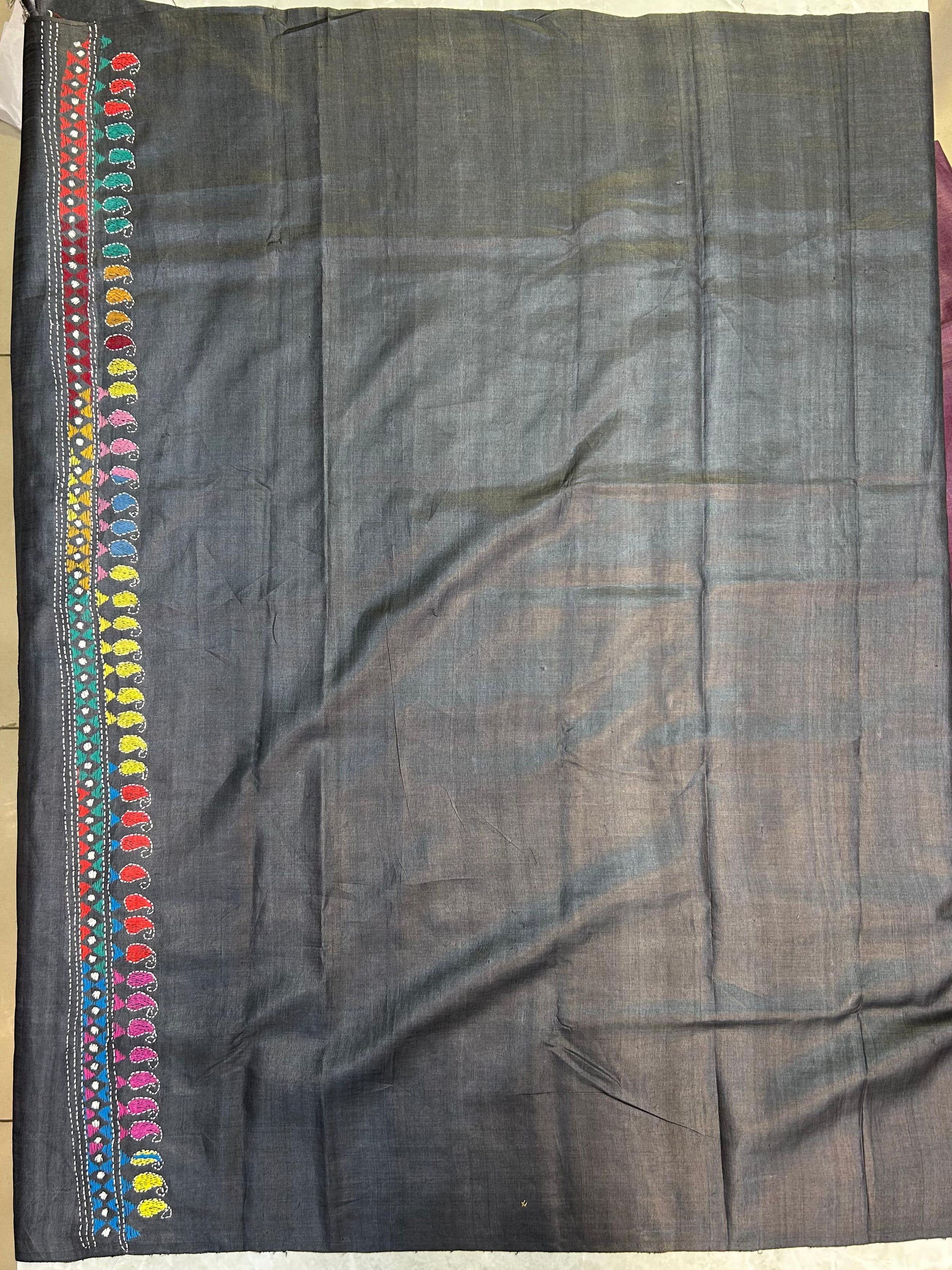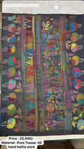 Kalpana’s Creations presents a stunning DESIGNER pure Tussar silk saree, intricately adorned with hand Katha work, offering a modern chic look that effortlessly combines traditional artistry with contemporary elegance.