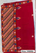 The saree comes paired with a rich designer blouse piece, curated to perfectly complement the Kantha aesthetics.