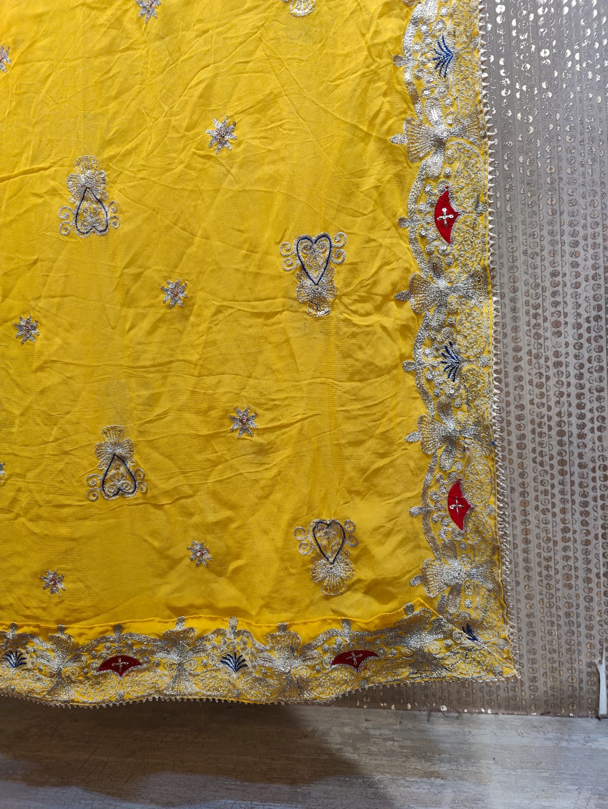 A yellow color vintage dupatta, measuring 2.5 meters in length, is a radiant and joyful piece that embodies warmth, positivity, and cultural richness. Here’s a detailed description of this vibrant garment: