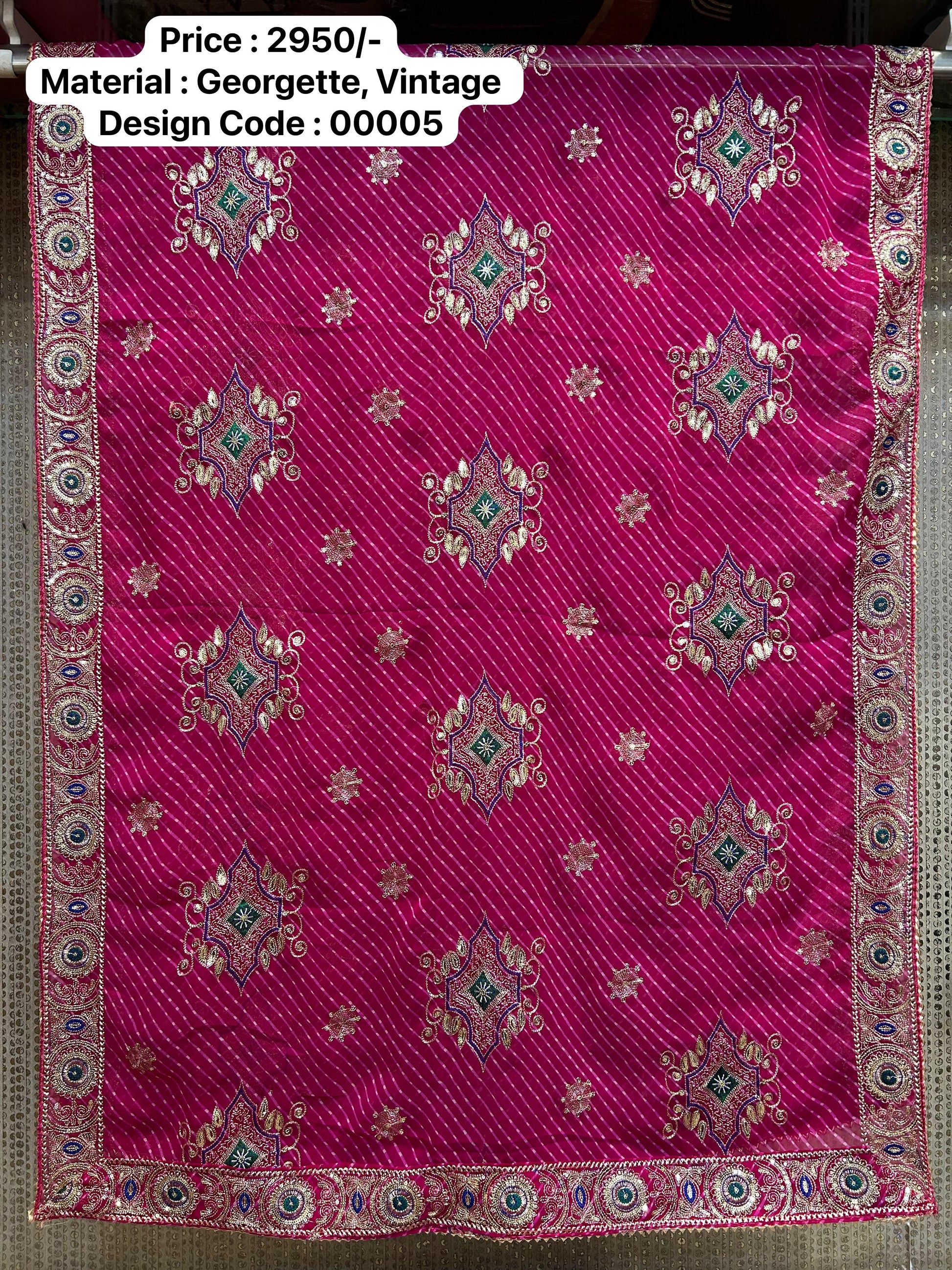 Kalpana’s Creations presents a stunning DESIGNER Georgette vintage dupatta, offering a perfect blend of timeless charm and modern chic style. This exquisite dupatta effortlessly elevates any ensemble with its delicate fabric and rich detailing.